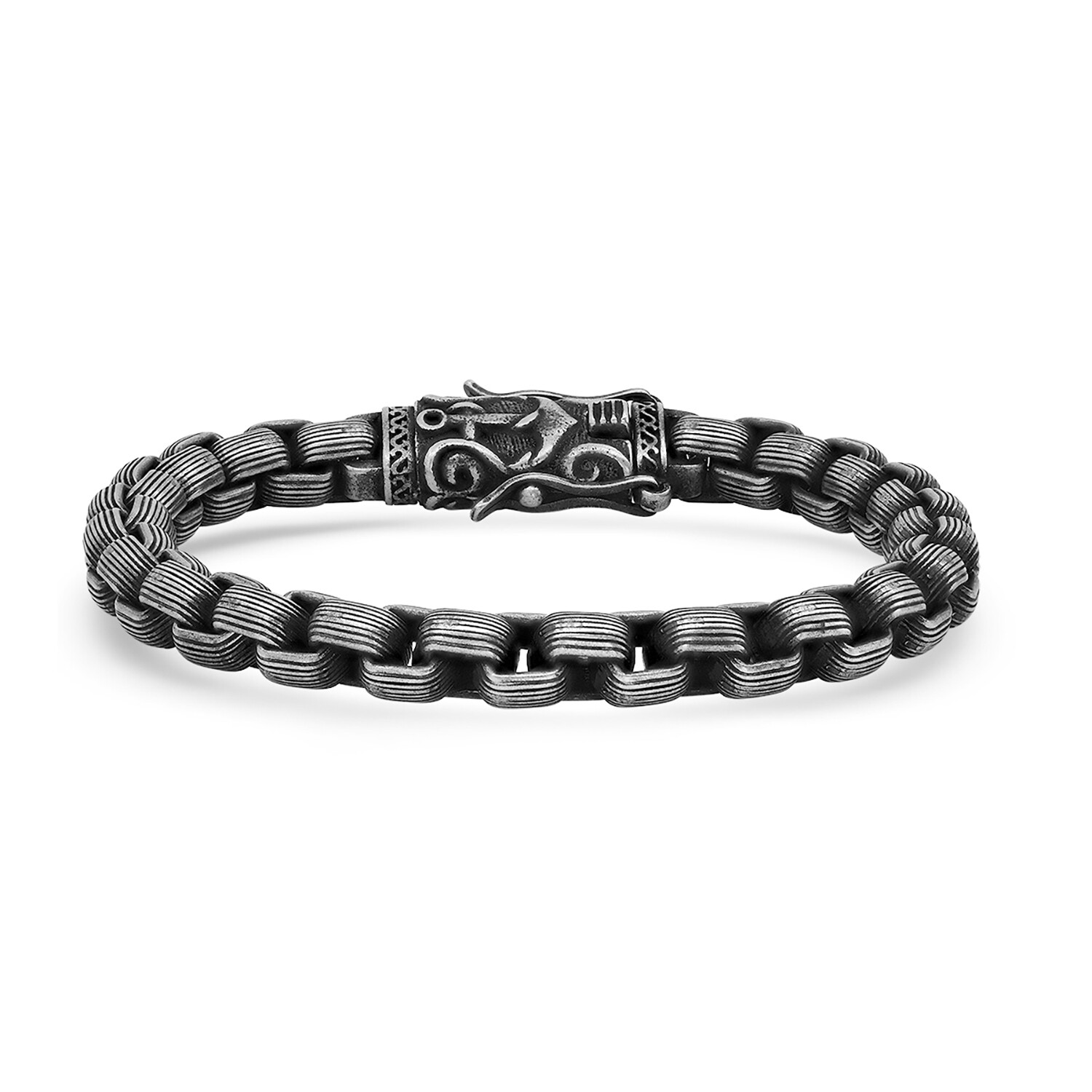 Oxidized Stainless Steel Round Box Chain Bracelet // Metallic