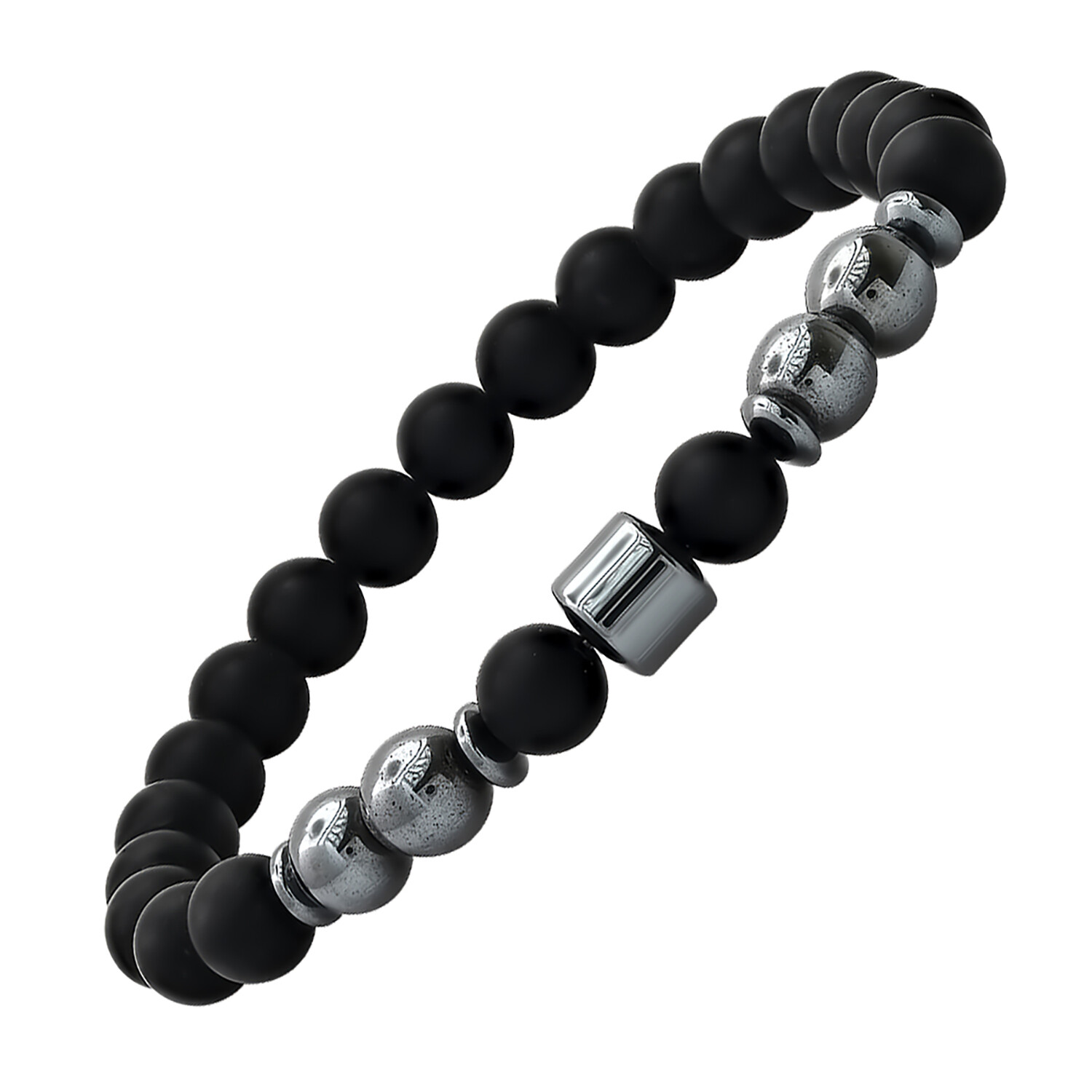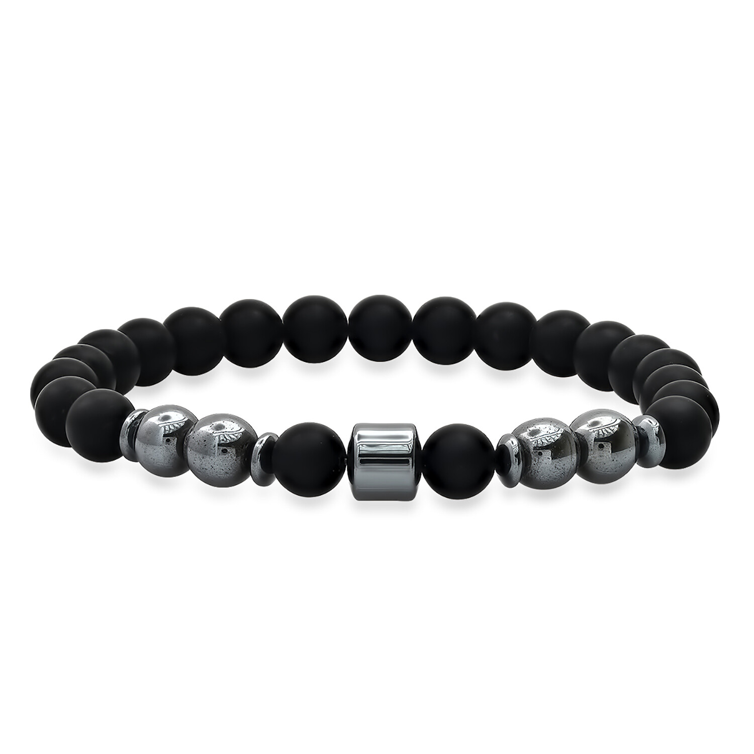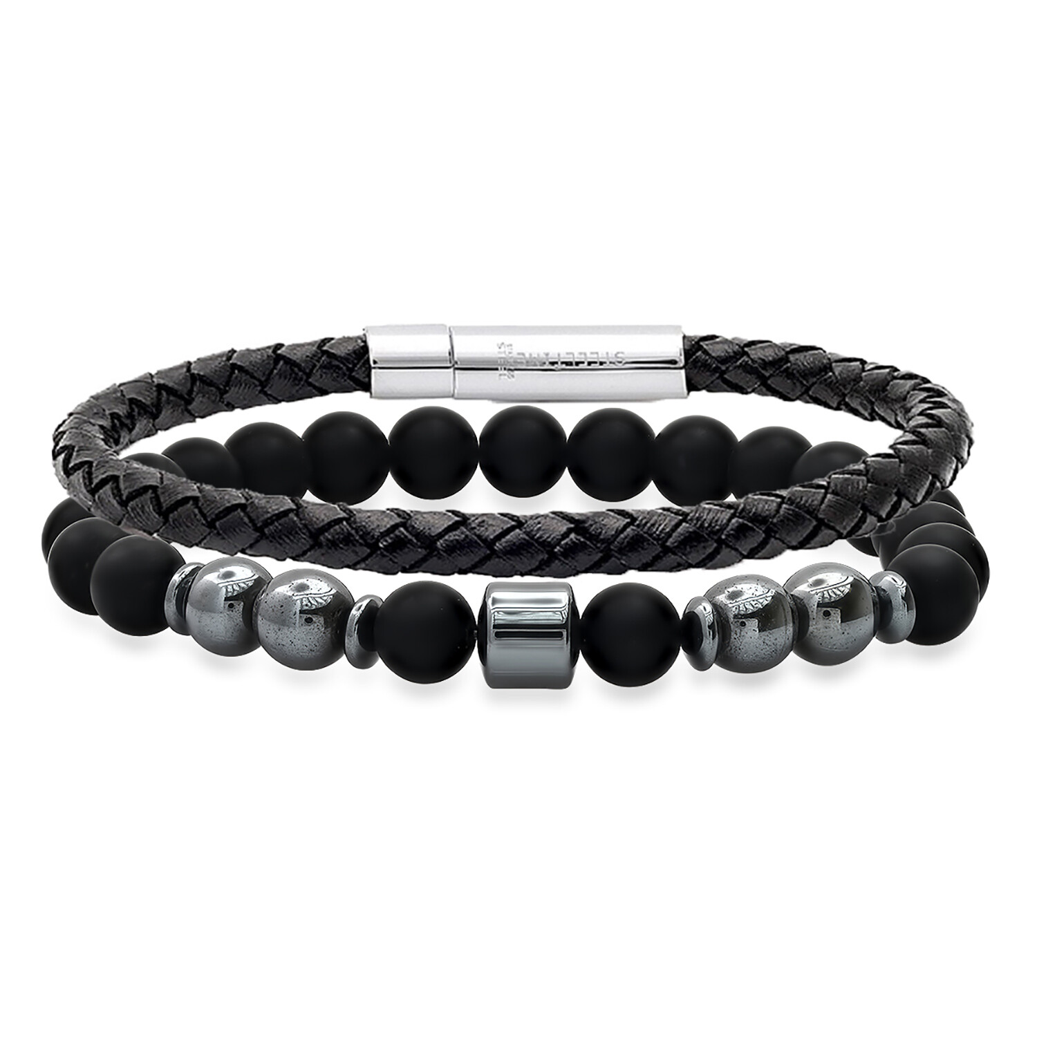 Stainless Steel + Beaded Bracelets // Set of 2 // Black + Metallic
