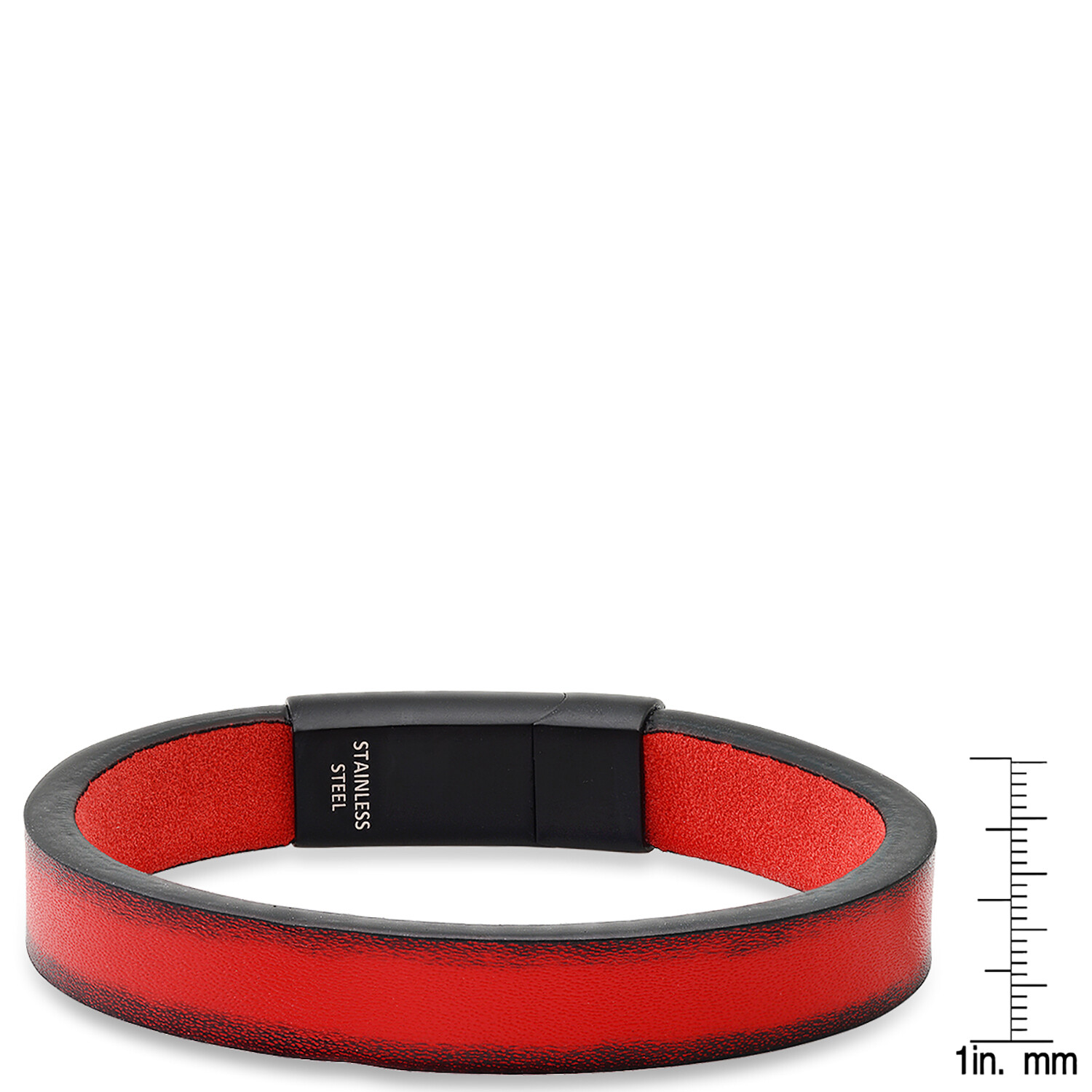 Stainless Steel + Leather Bracelets // Set of 2 // Red + Black