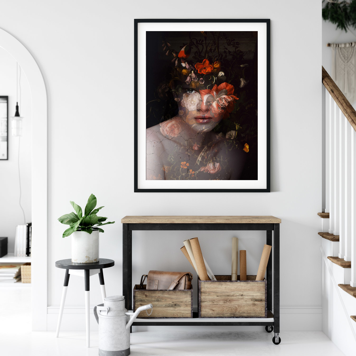 Mora's collection of prints breaks the boundary between reality and a dream state. His work dissolves the limits between two or more superimposed images, which result in human faces being mixed with landscapes, vegetation, lakes, and oceans. His collages are bold and strange, pulling together two parallel worlds to evoke a sense of thought and emotion from his audience.
