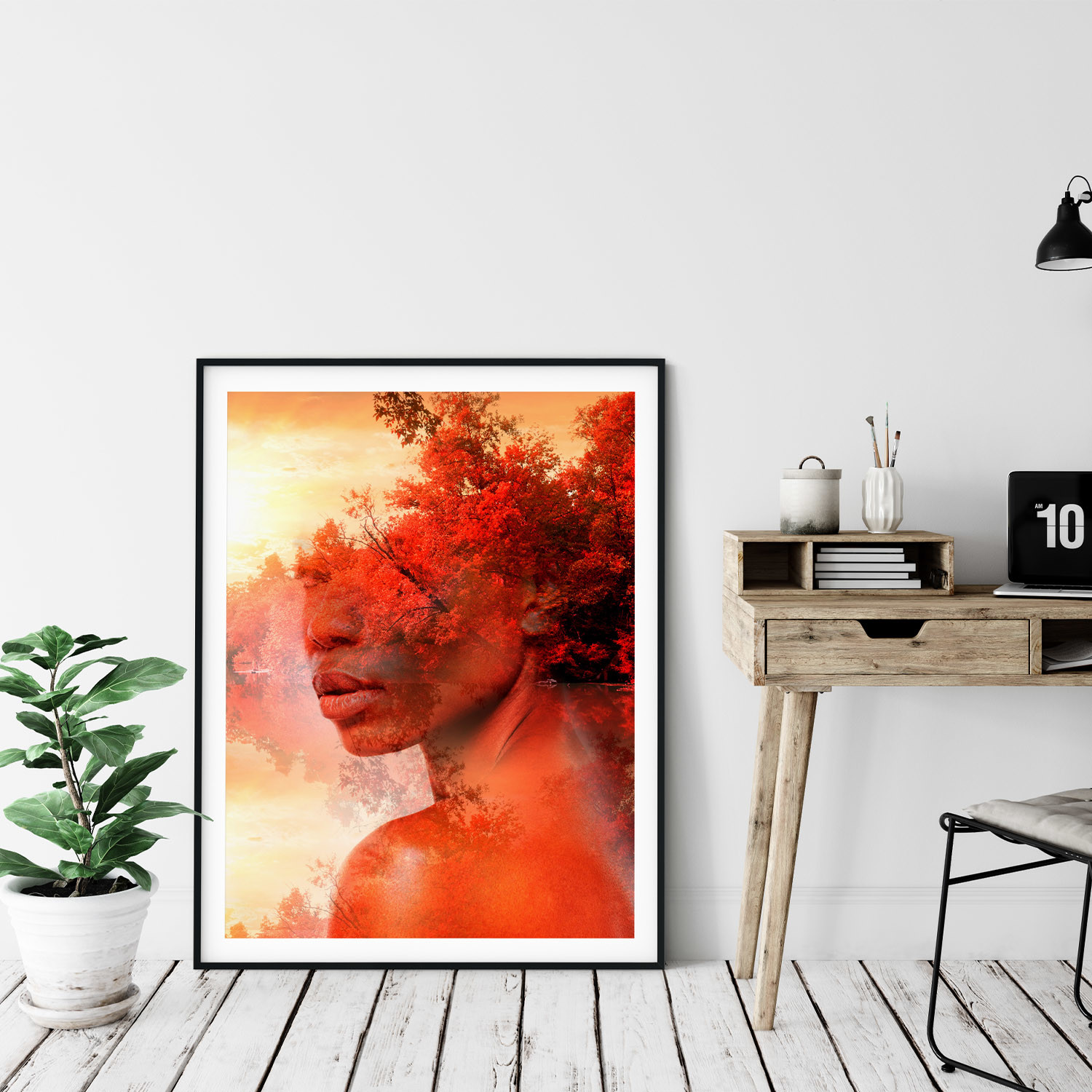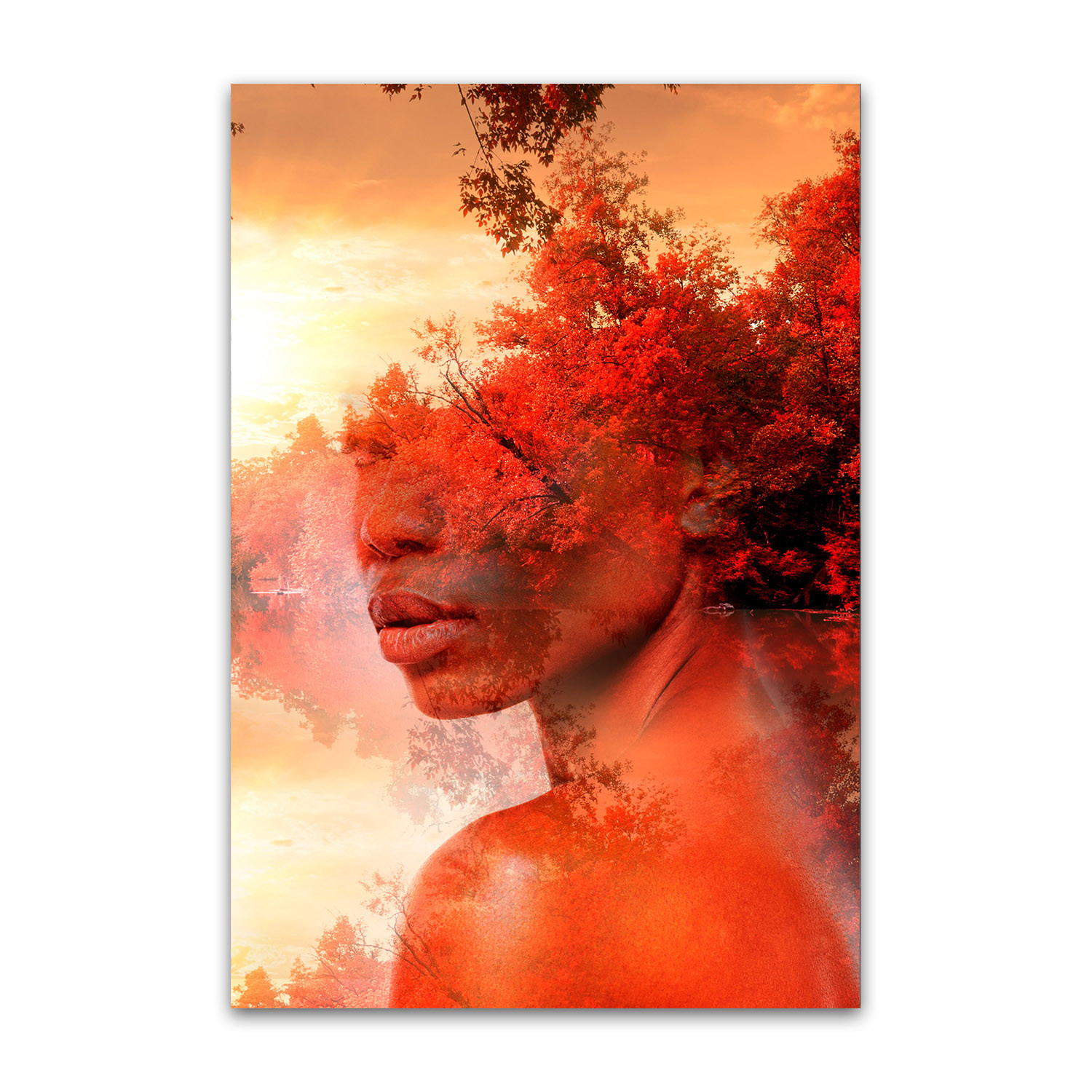 Mora's collection of prints breaks the boundary between reality and a dream state. His work dissolves the limits between two or more superimposed images, which result in human faces being mixed with landscapes, vegetation, lakes, and oceans. His collages are bold and strange, pulling together two parallel worlds to evoke a sense of thought and emotion from his audience.