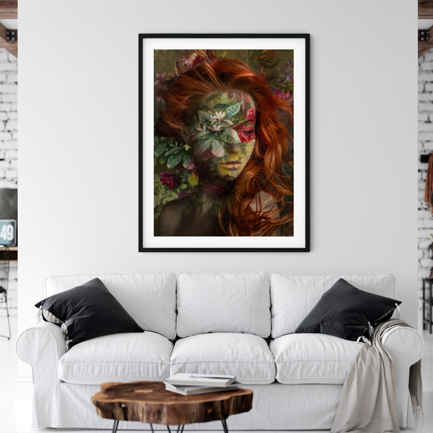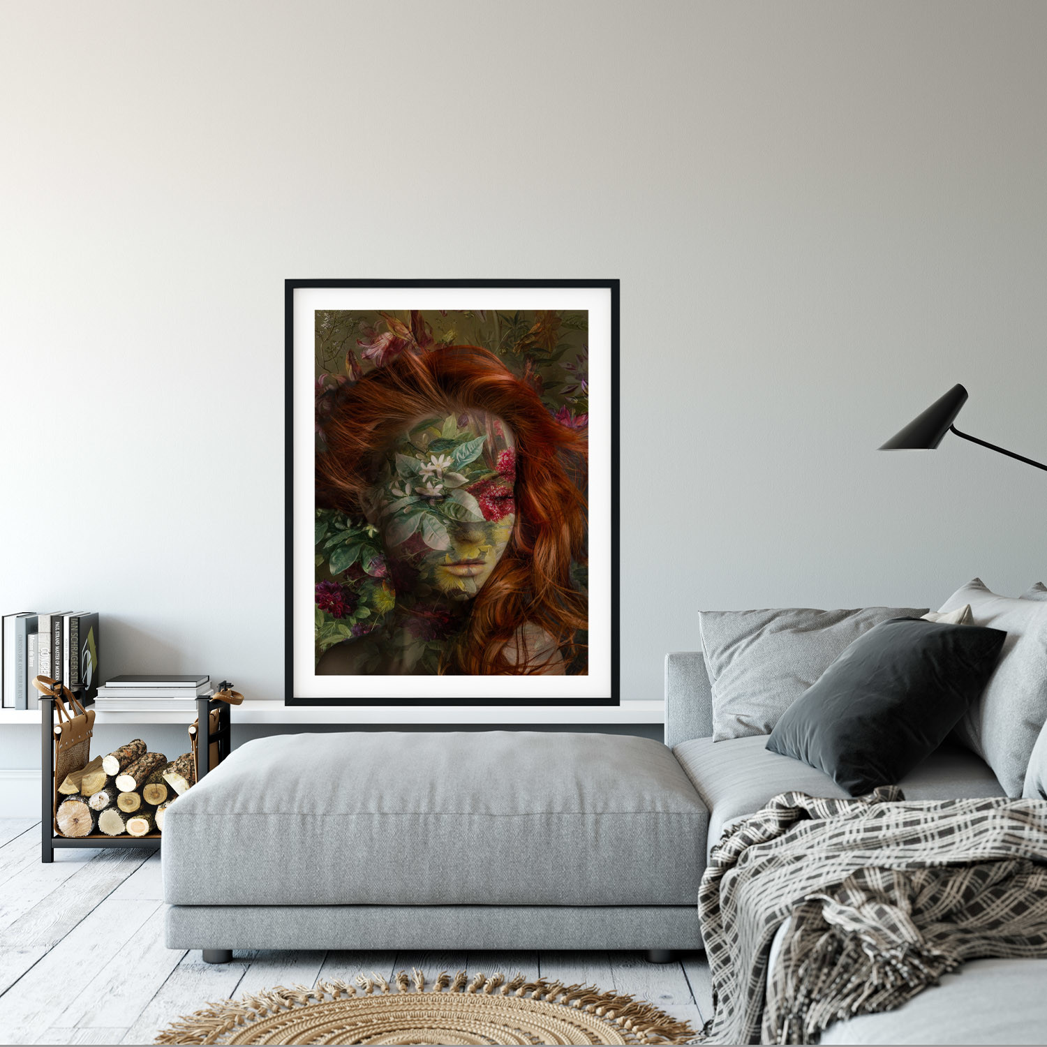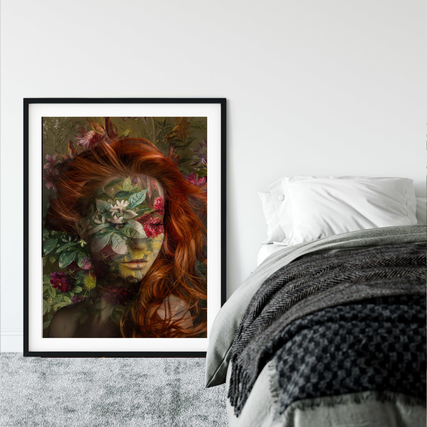 Mora's collection of prints breaks the boundary between reality and a dream state. His work dissolves the limits between two or more superimposed images, which result in human faces being mixed with landscapes, vegetation, lakes, and oceans. His collages are bold and strange, pulling together two parallel worlds to evoke a sense of thought and emotion from his audience.