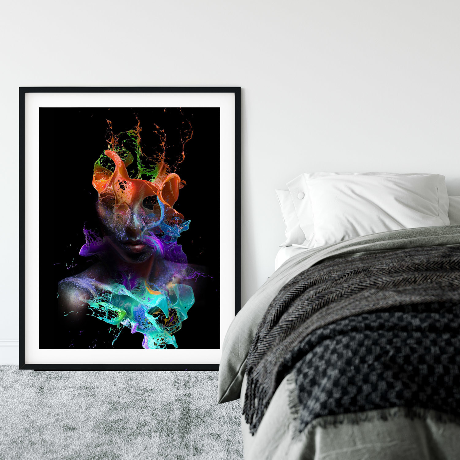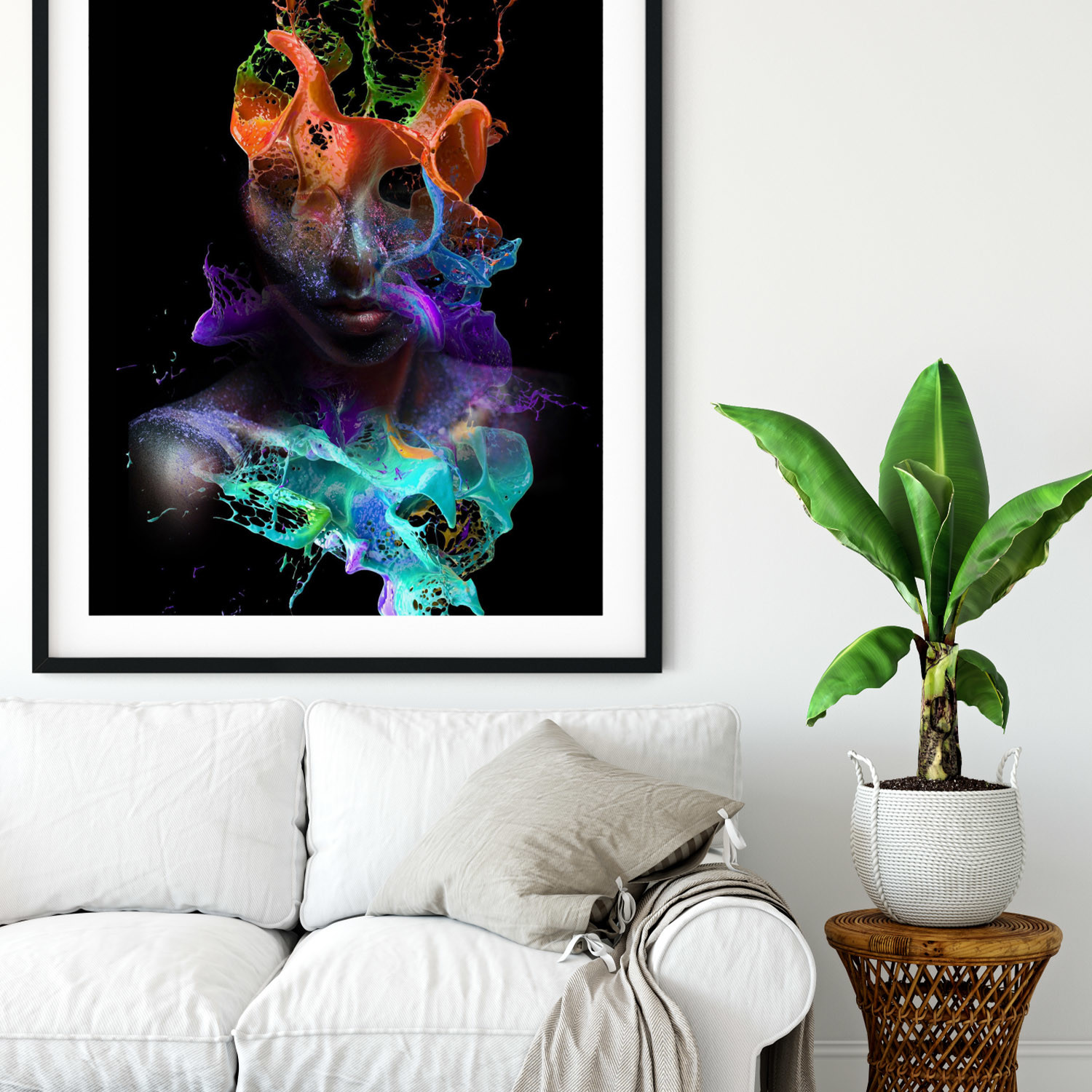 Mora's collection of prints breaks the boundary between reality and a dream state. His work dissolves the limits between two or more superimposed images, which result in human faces being mixed with landscapes, vegetation, lakes, and oceans. His collages are bold and strange, pulling together two parallel worlds to evoke a sense of thought and emotion from his audience.