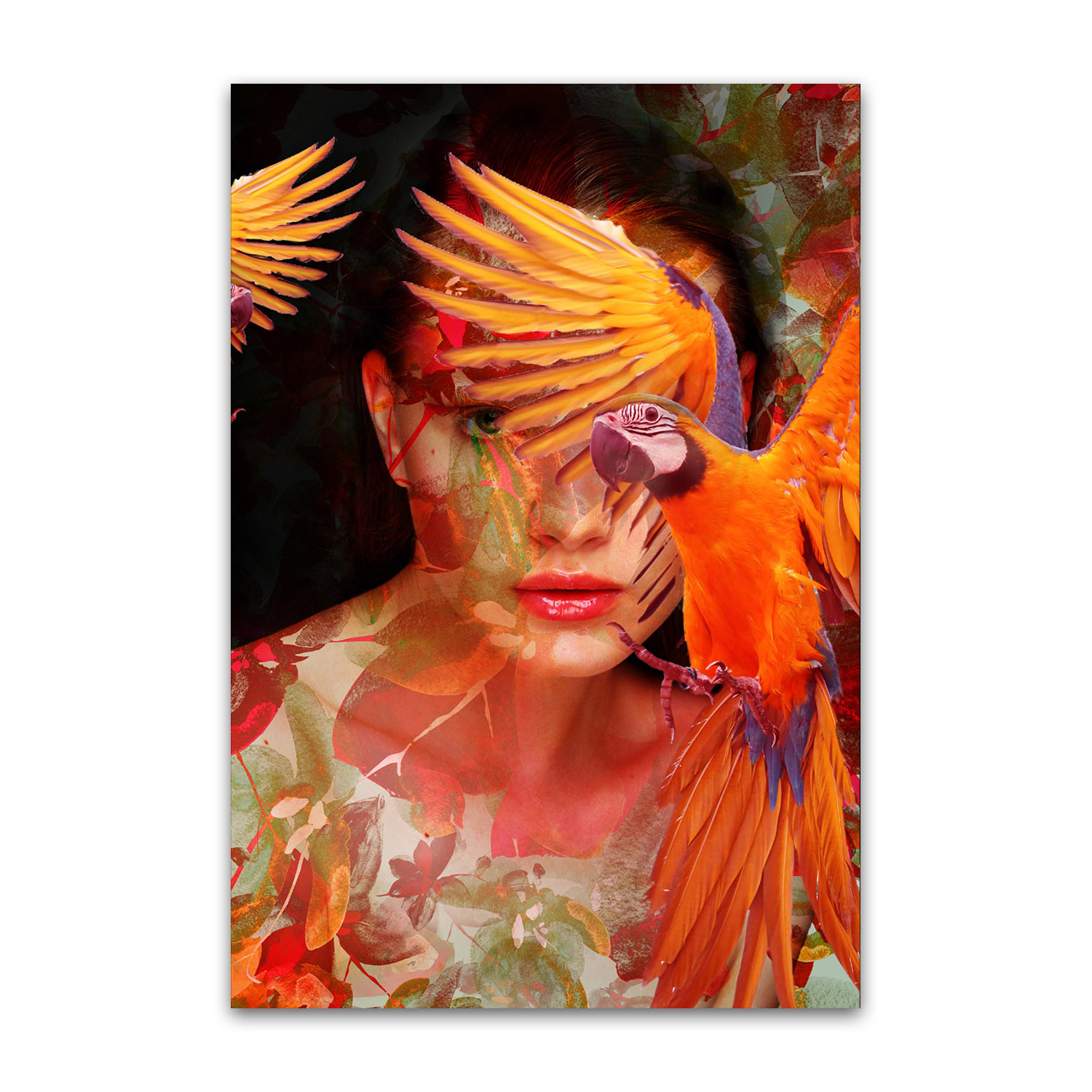 Mora's collection of prints breaks the boundary between reality and a dream state. His work dissolves the limits between two or more superimposed images, which result in human faces being mixed with landscapes, vegetation, lakes, and oceans. His collages are bold and strange, pulling together two parallel worlds to evoke a sense of thought and emotion from his audience.
