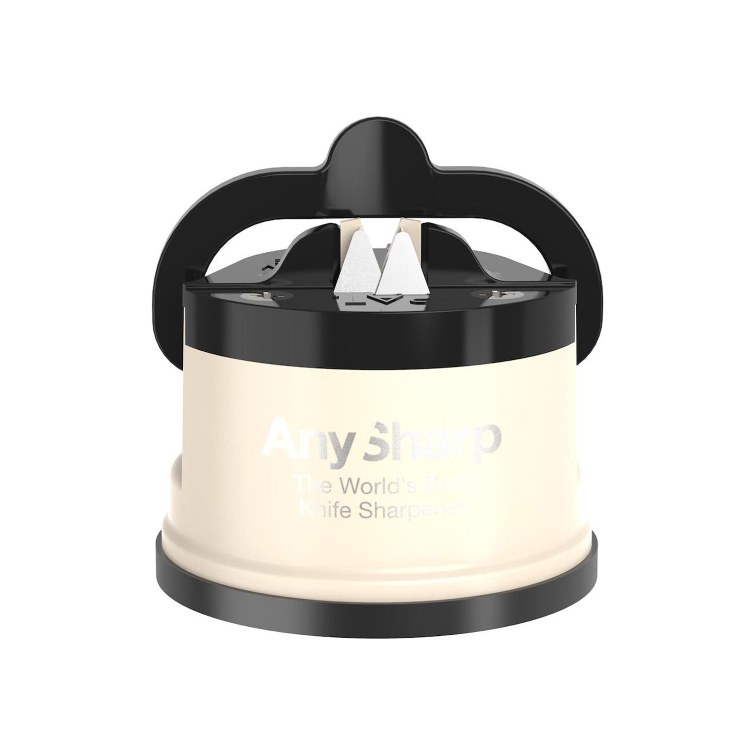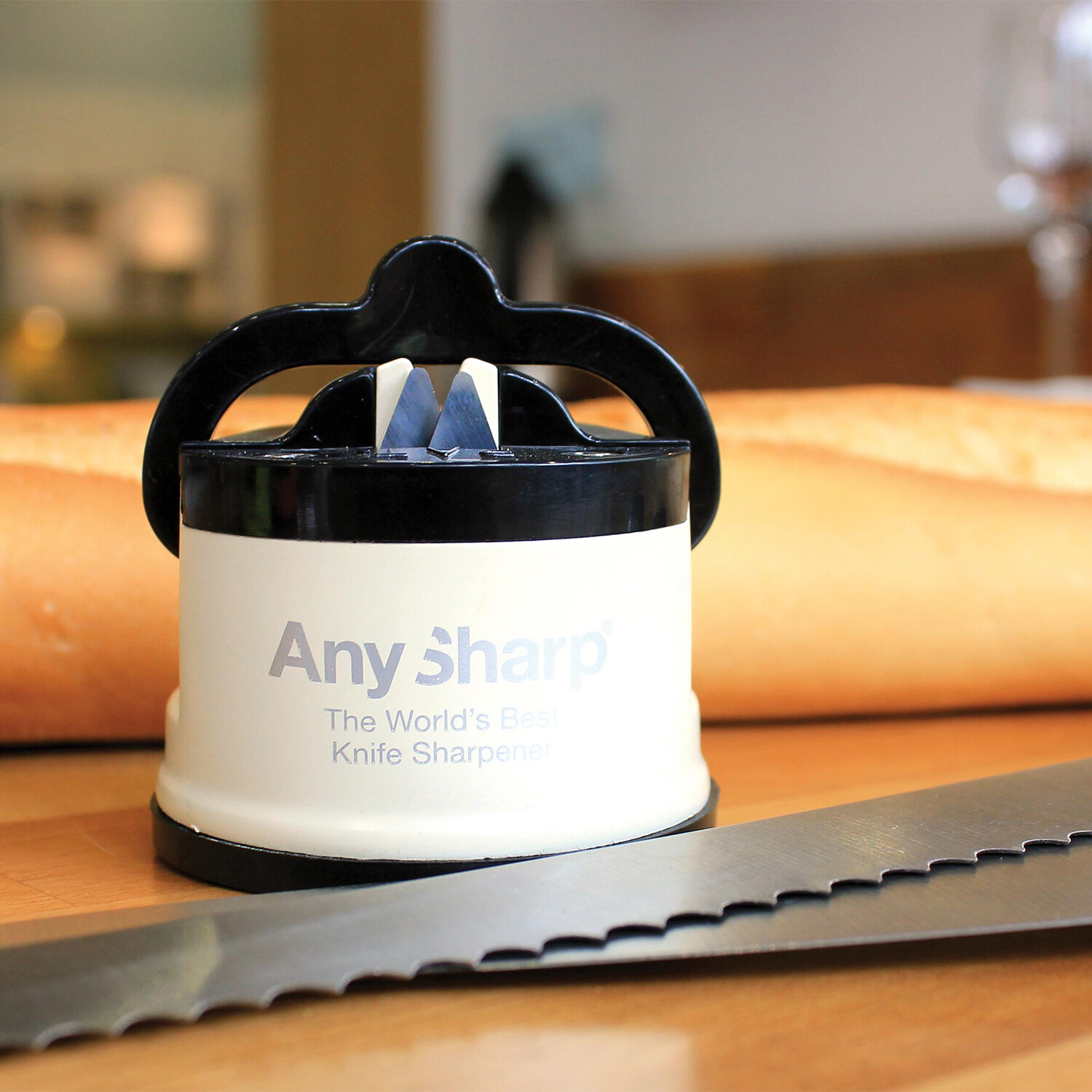 The AnySharp Pro Chef Knife Sharpener rejuvenates knives safely and without the hassle. All it takes is a few light strokes, and in seconds, your knife is sharp as new. The advanced, diamond-honed Tungsten Carbide blades are pre-set at 20º to easily sharpen straight, serrated, and hardened steel blades alike. This provides professional-quality results with no experience required to help make cooking easy and more safe. The patented Power Grip suction cup base keeps the sharpener in place for single-handed sharpening.