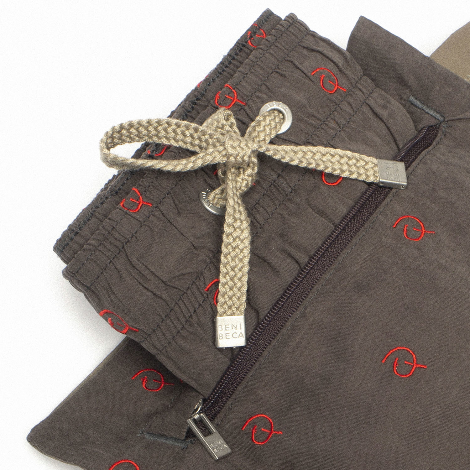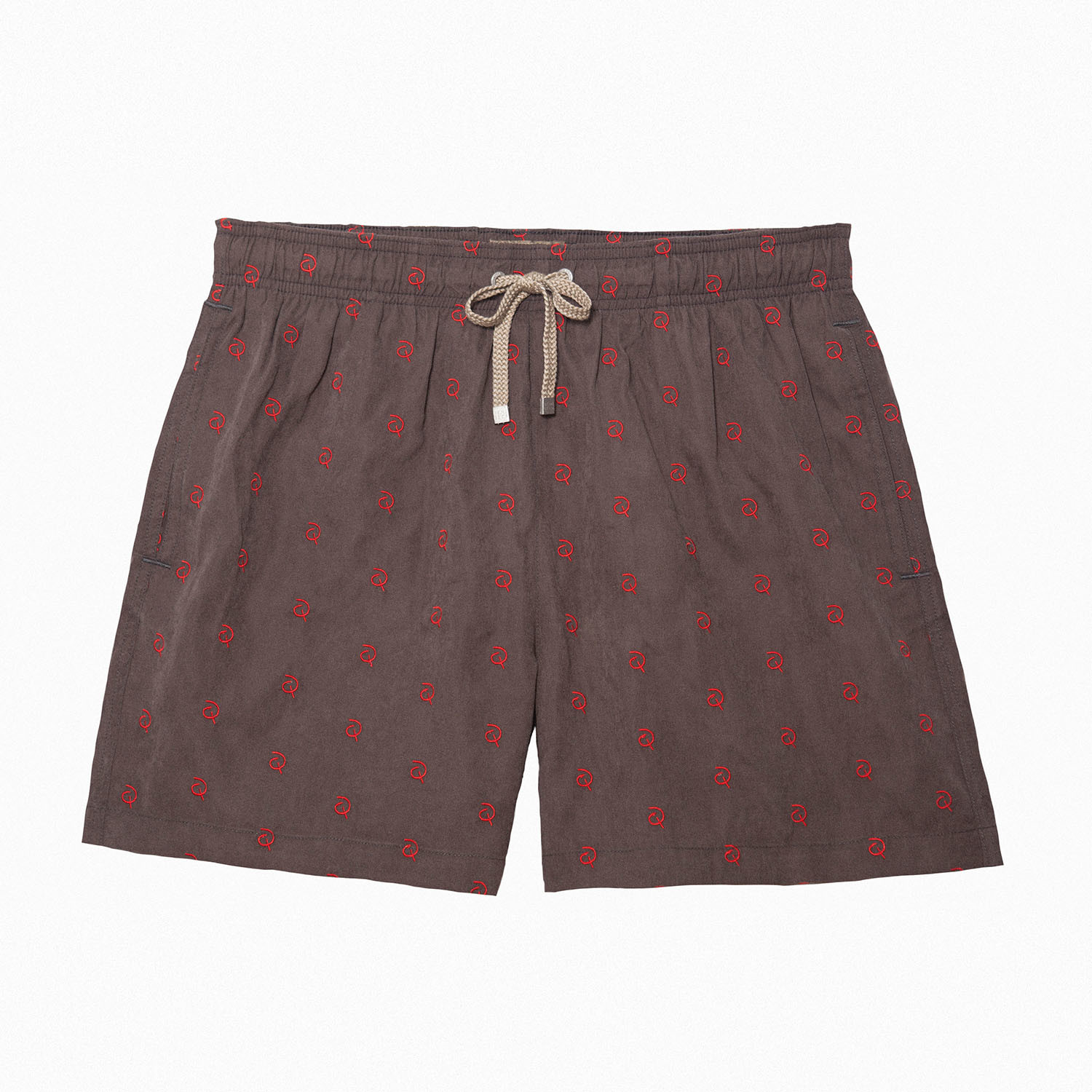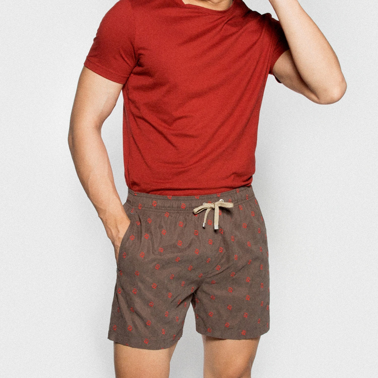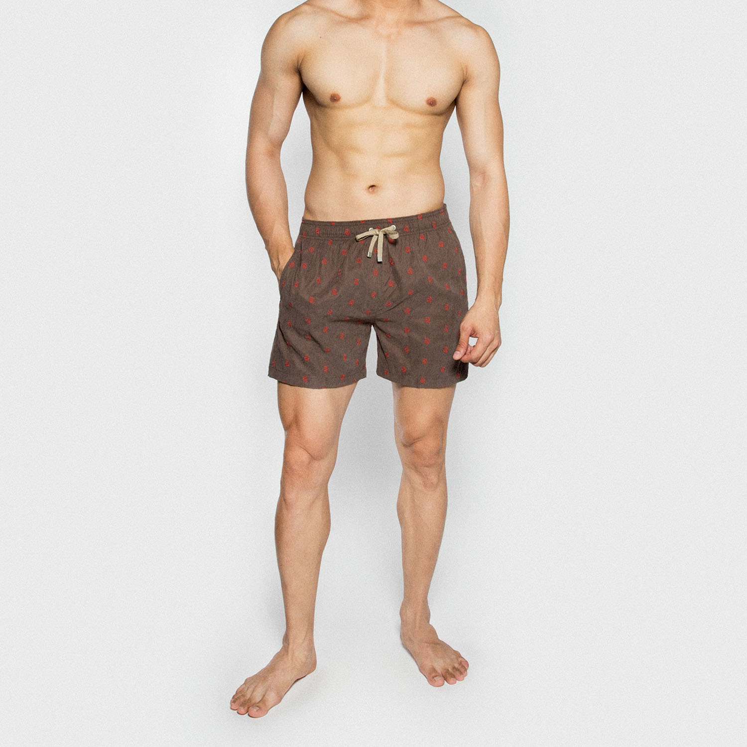 Kutuco Embroidered Swim Shorts // Brown + Red (L)