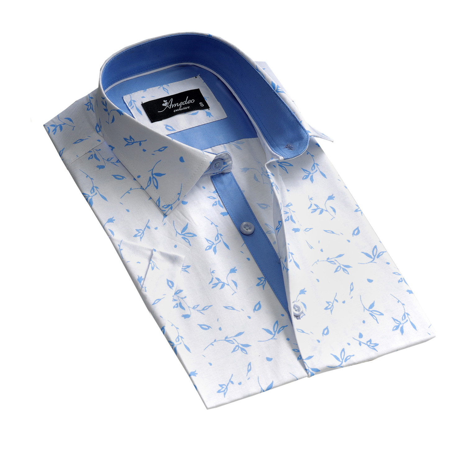Floral Short Sleeve Button Down Shirt // Light Blue + White (3XL)
