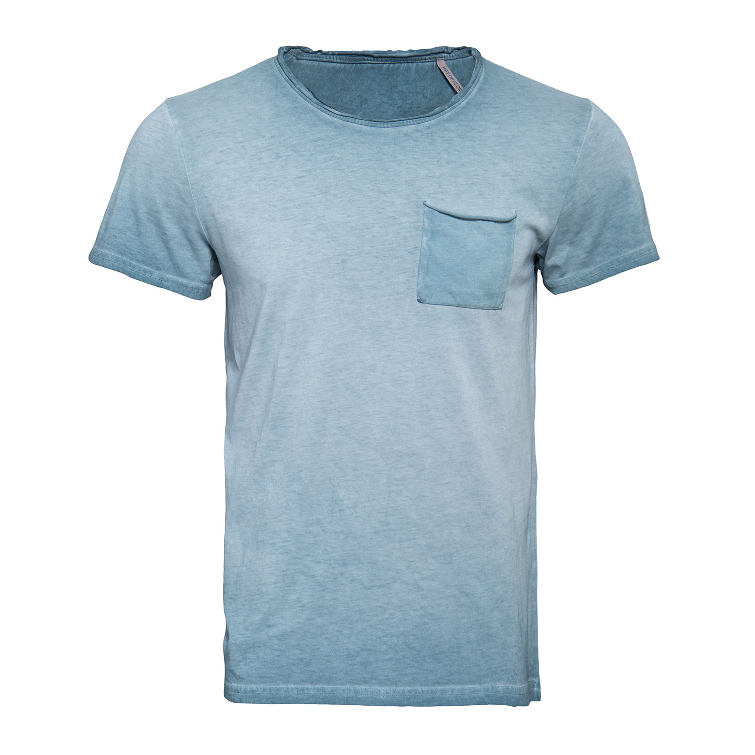 Oil-Washed Crew Neck Pocket T-shirt // Blue (M)