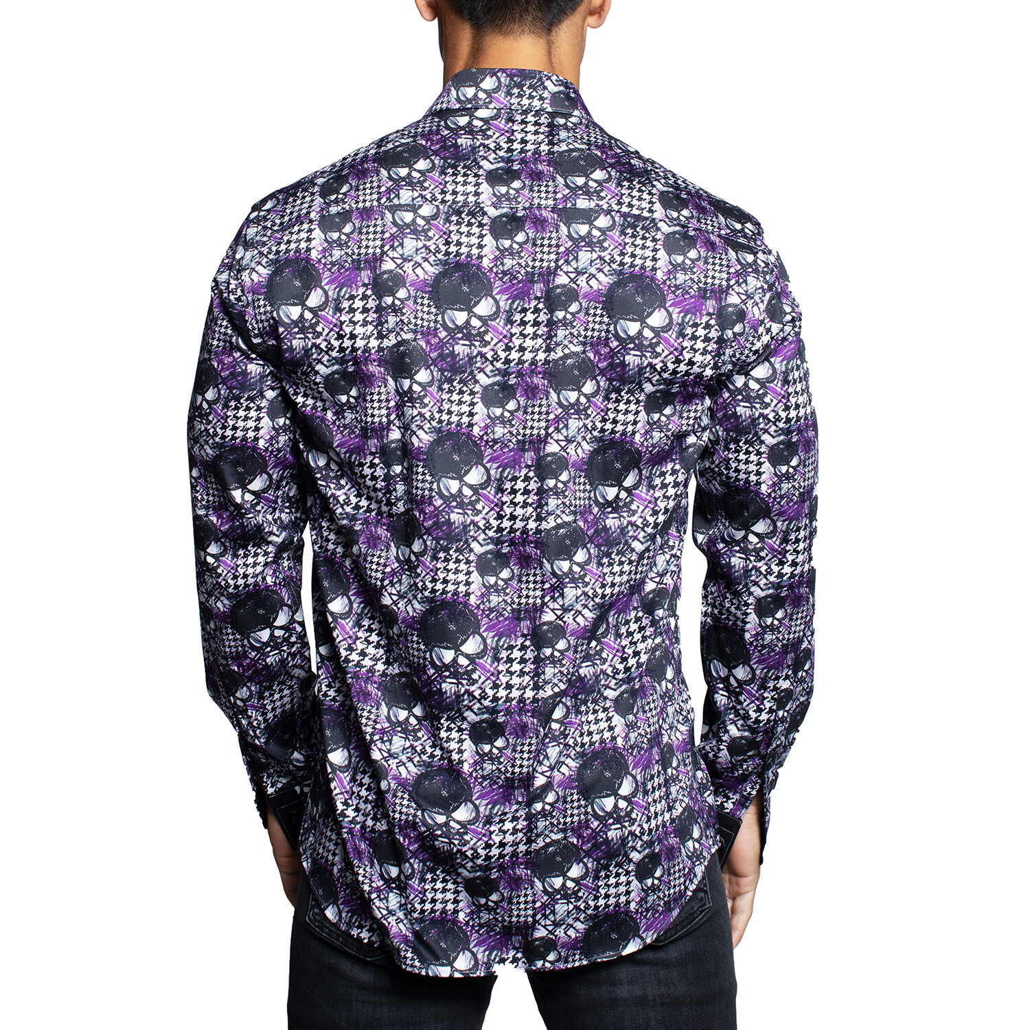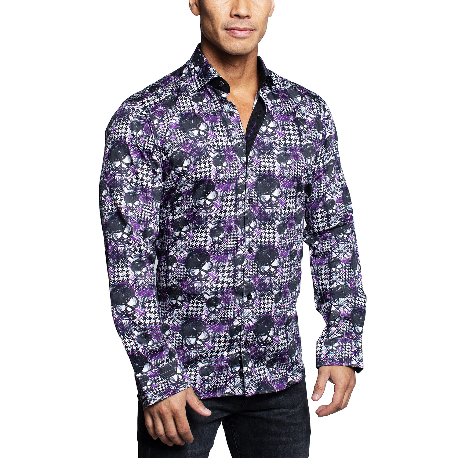 Fibonacci SkullTooth Button Up Shirt // Purple + Black (3XL)
