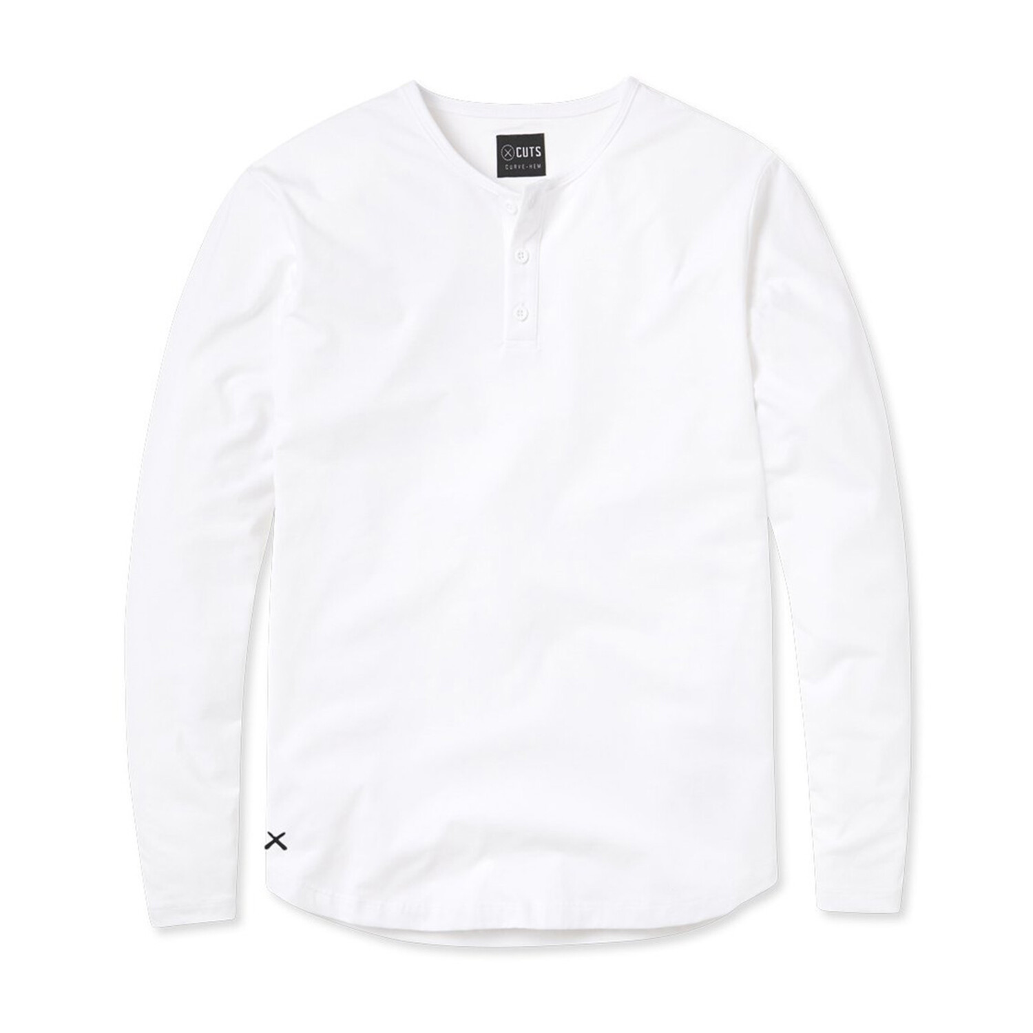 Long Sleeve Henley + Curve Hem // White (X-Large)