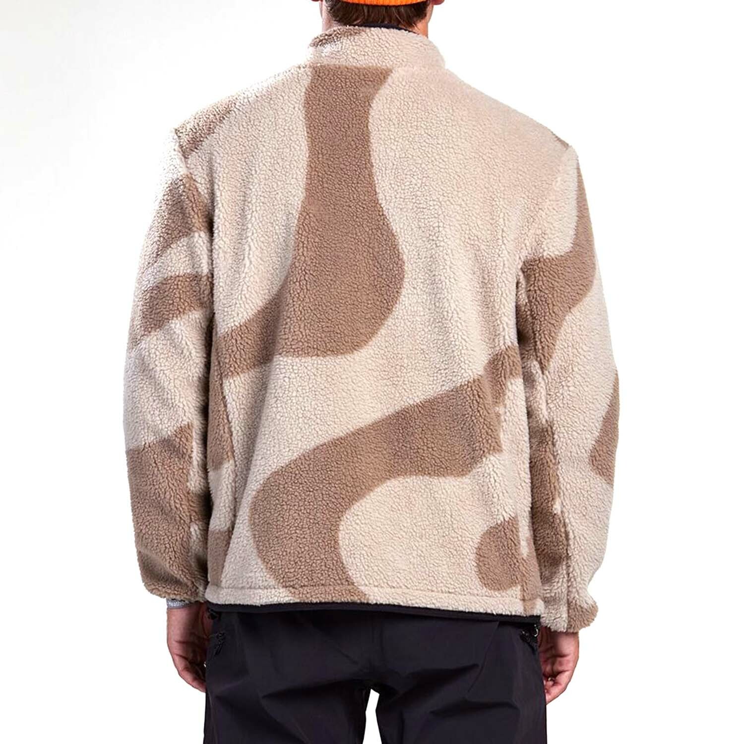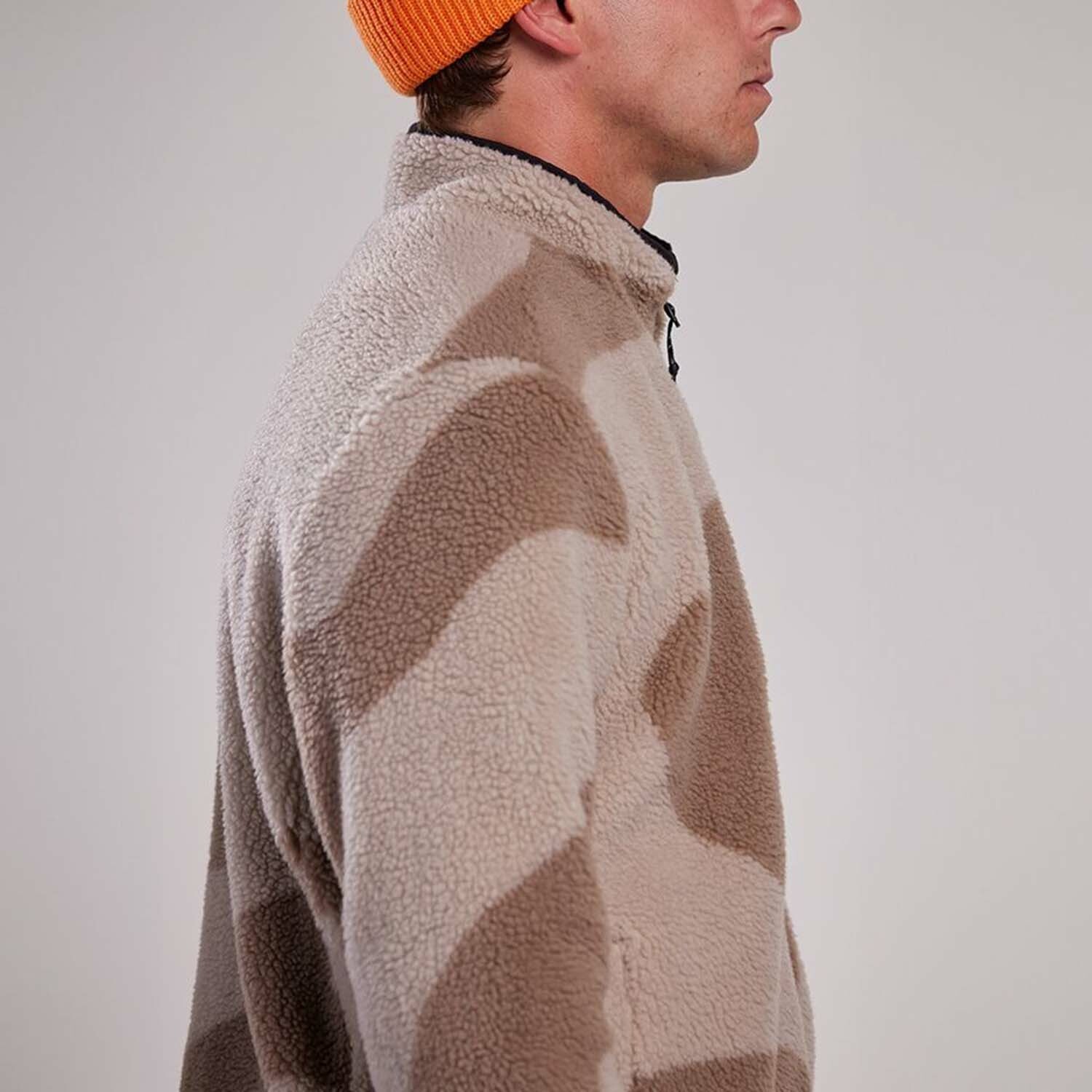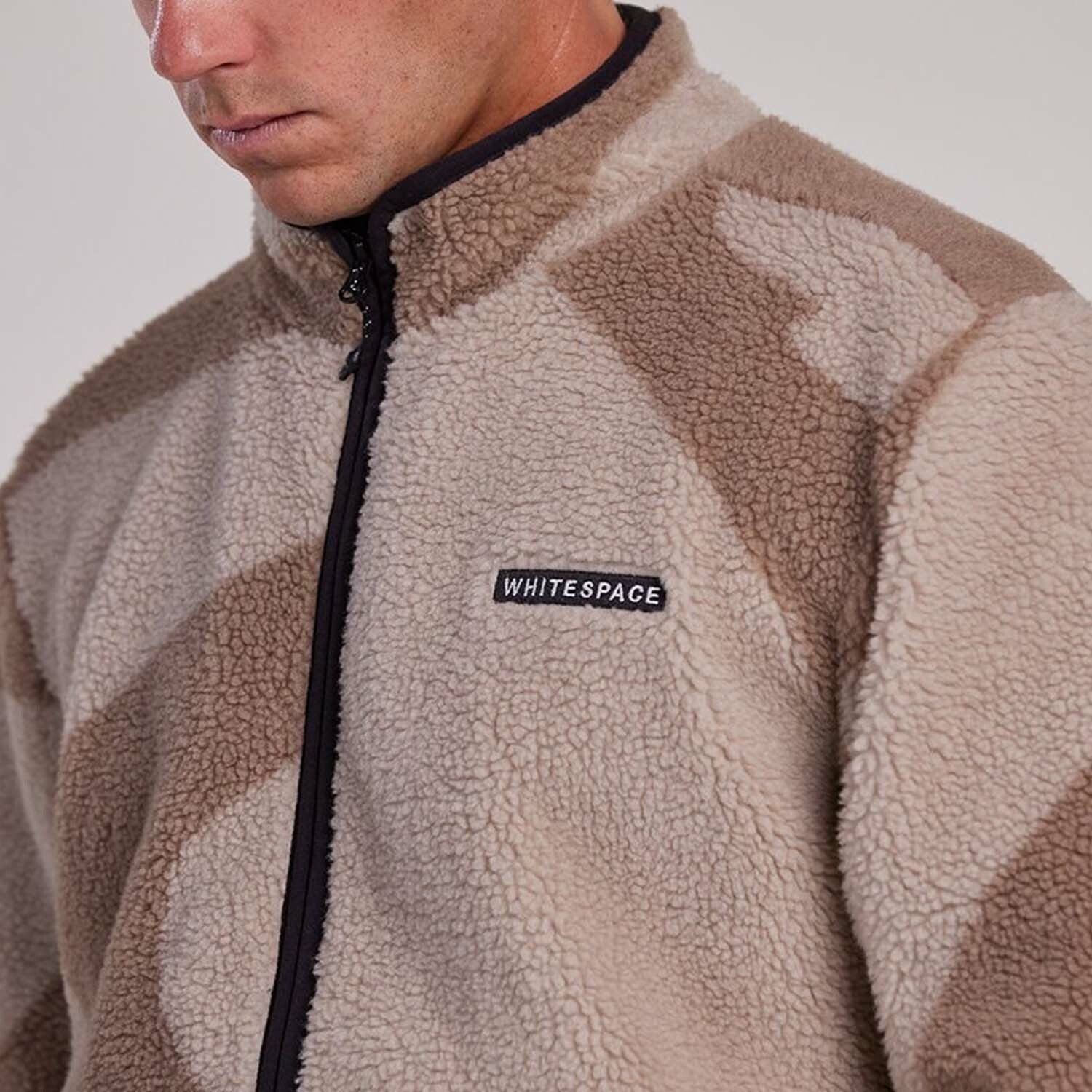 WHITESPACE // Men's // Cinchable Sherpa Fleece Zip-Up // Tan Camo Print + Black