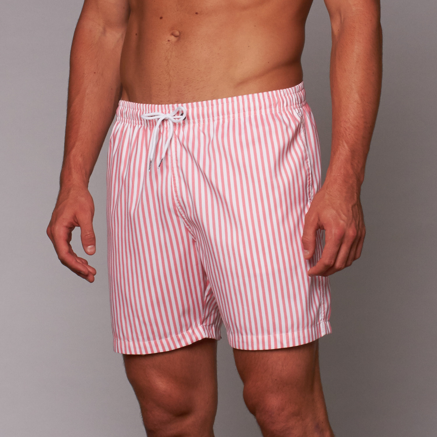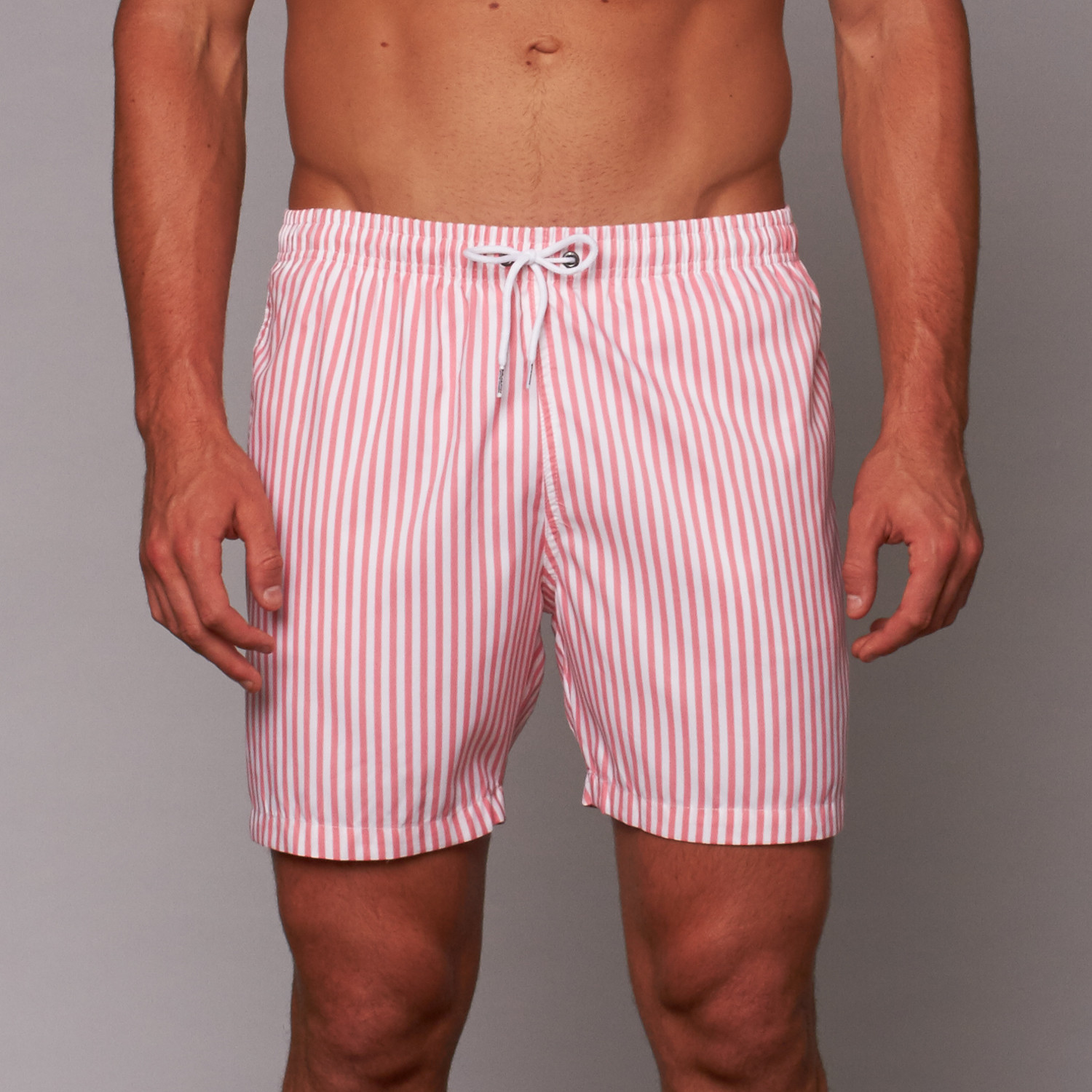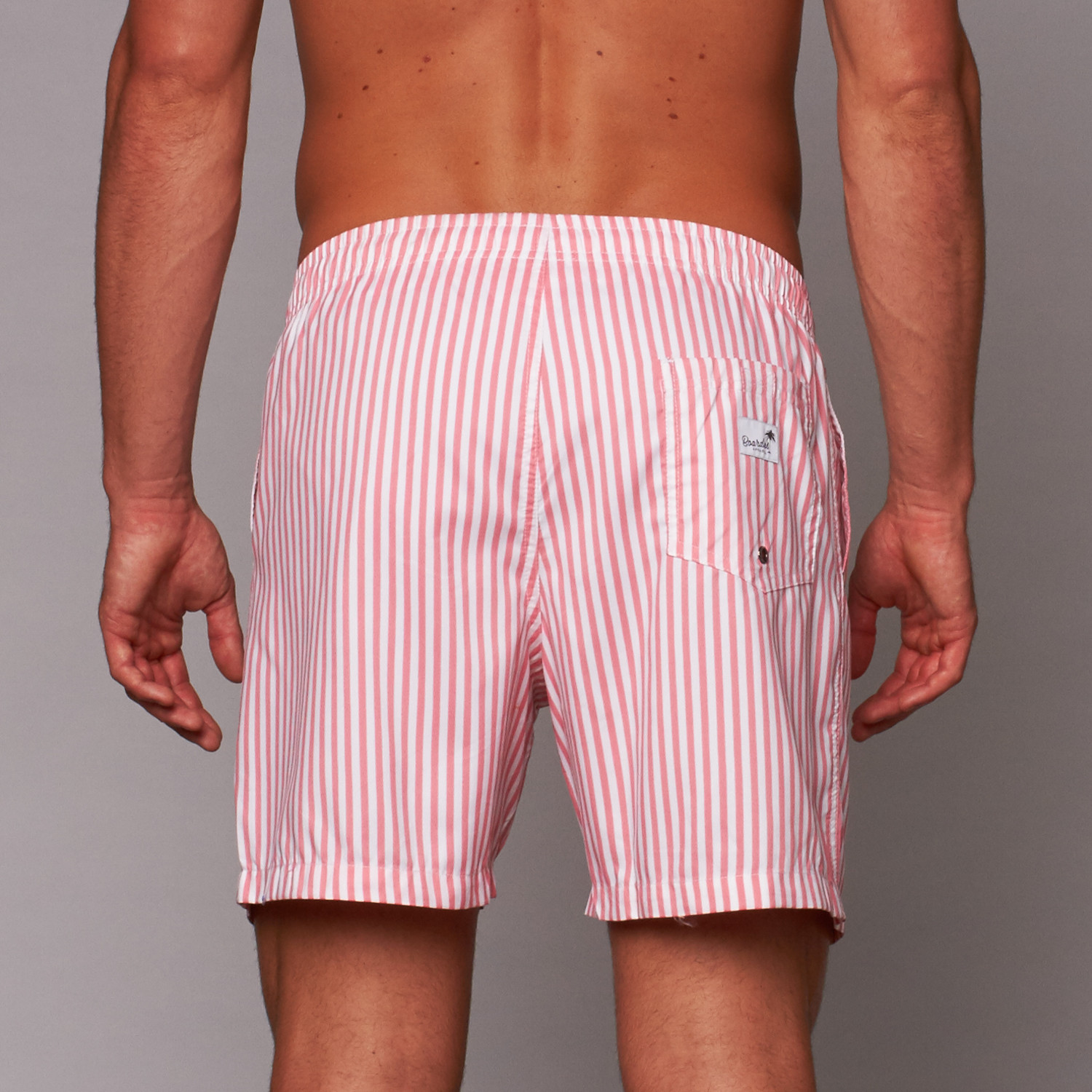 Boardies // Deck Stripe Mid-Length Short // Pink + White (M)