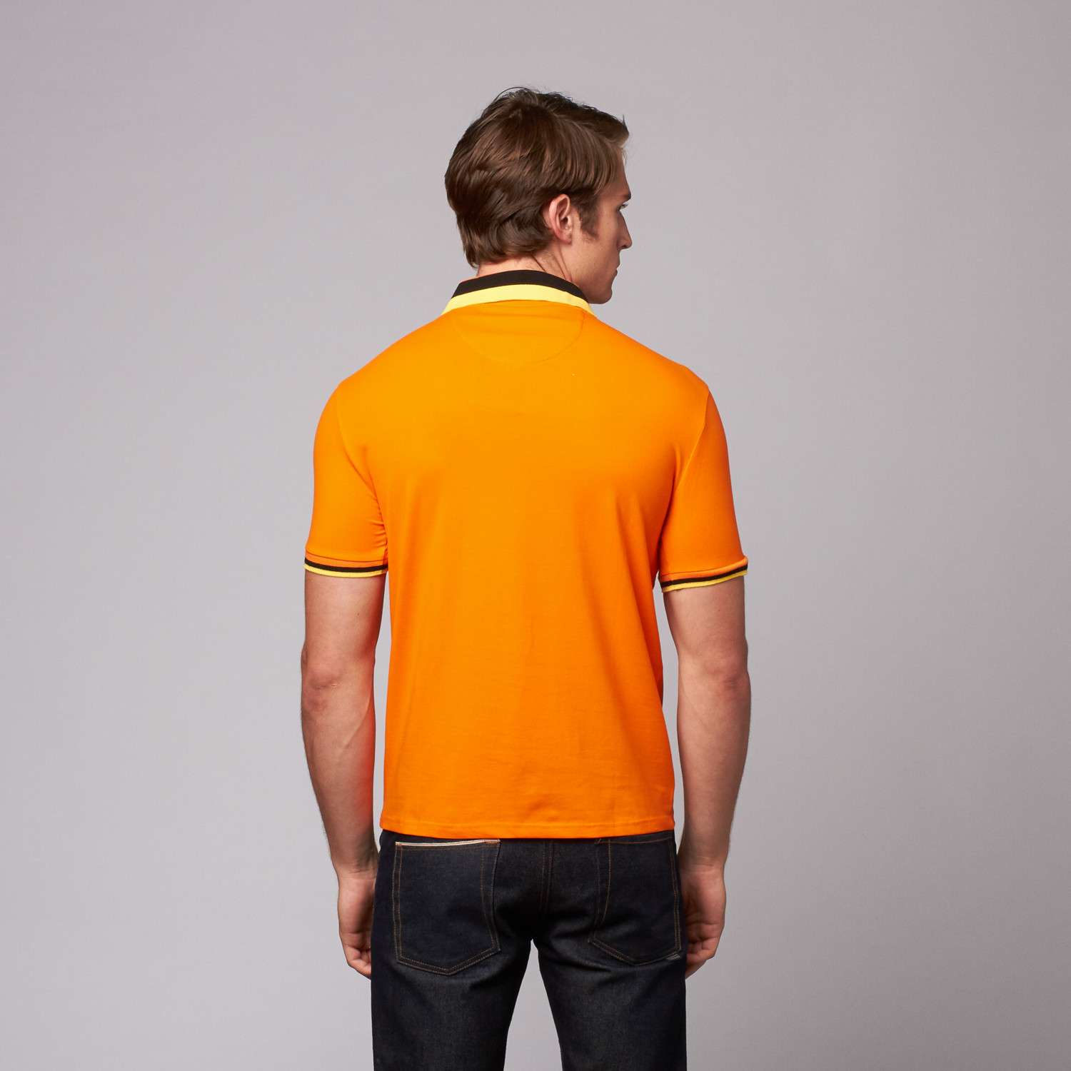 Button Pique Polo // Orange + Yellow + Black (XL)