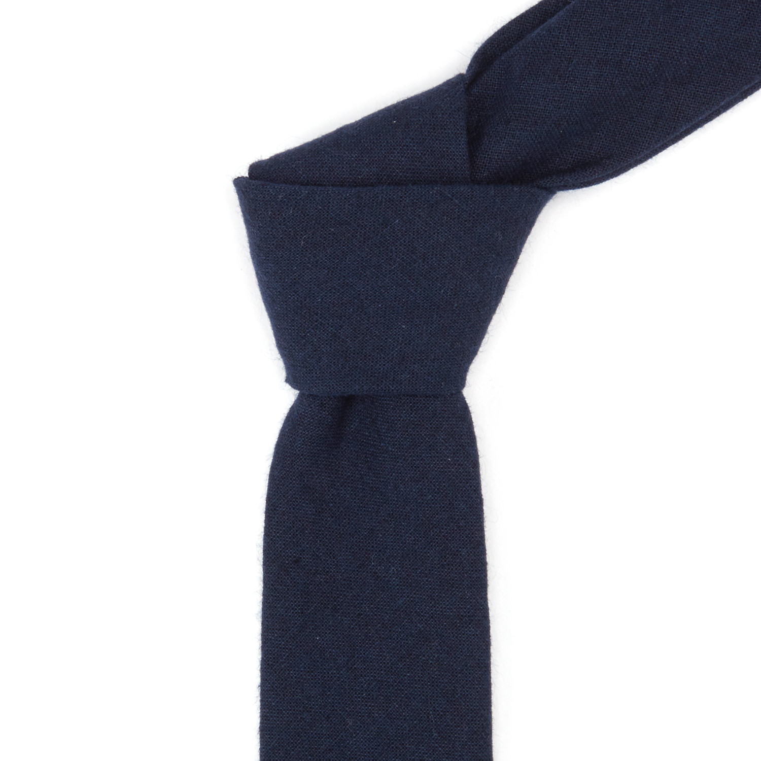 This deep navy colored skinny tie is an incredibly versatile pick that you can wear with just about anything. Made from a linen cotton blend, the Carolina In My Mind tie features contrasting navy and white stripe lining and loop.