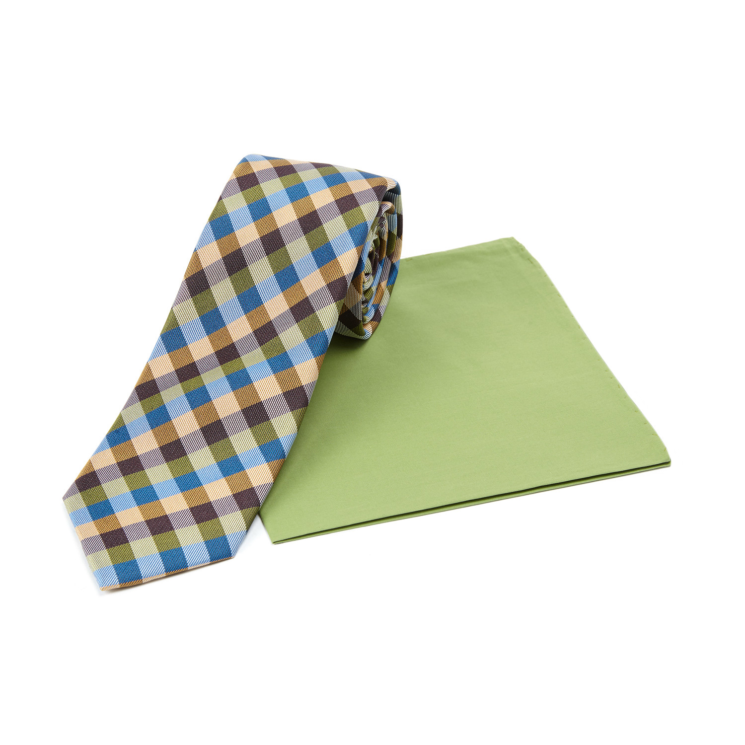 Colorful Gingham Tie + Solid Cotton Pocket Square // Nature + Moss Green