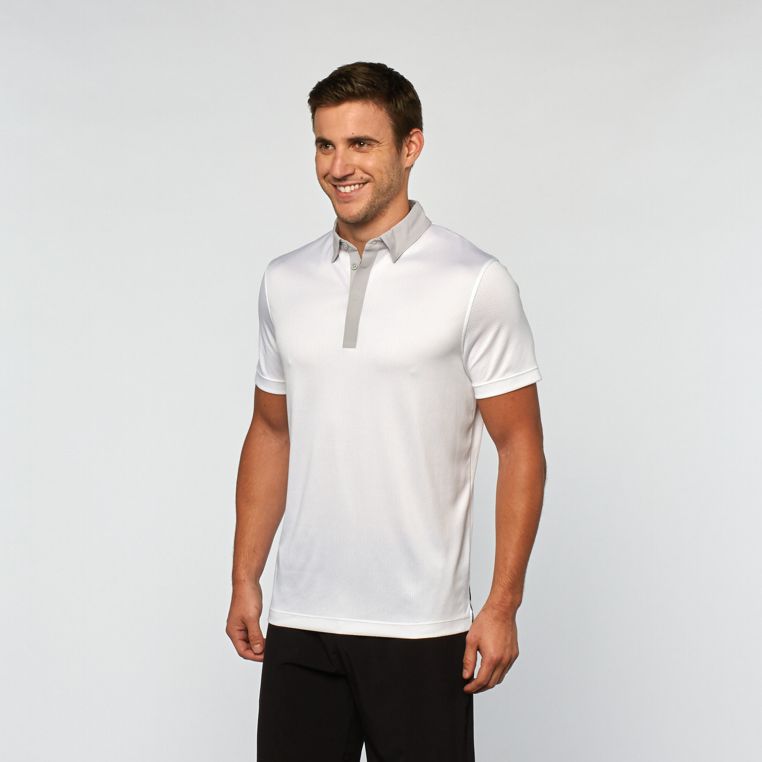 The Front Nine Blended Polo Shirt features a stretch woven collar and button placket, and has a great cooling ability. The collar can be secured during especially windy conditions with two concealed buttons. Four-way stretch, moisture-wicking, quick dry and breathability make it a practical triumph for your everyday activities.