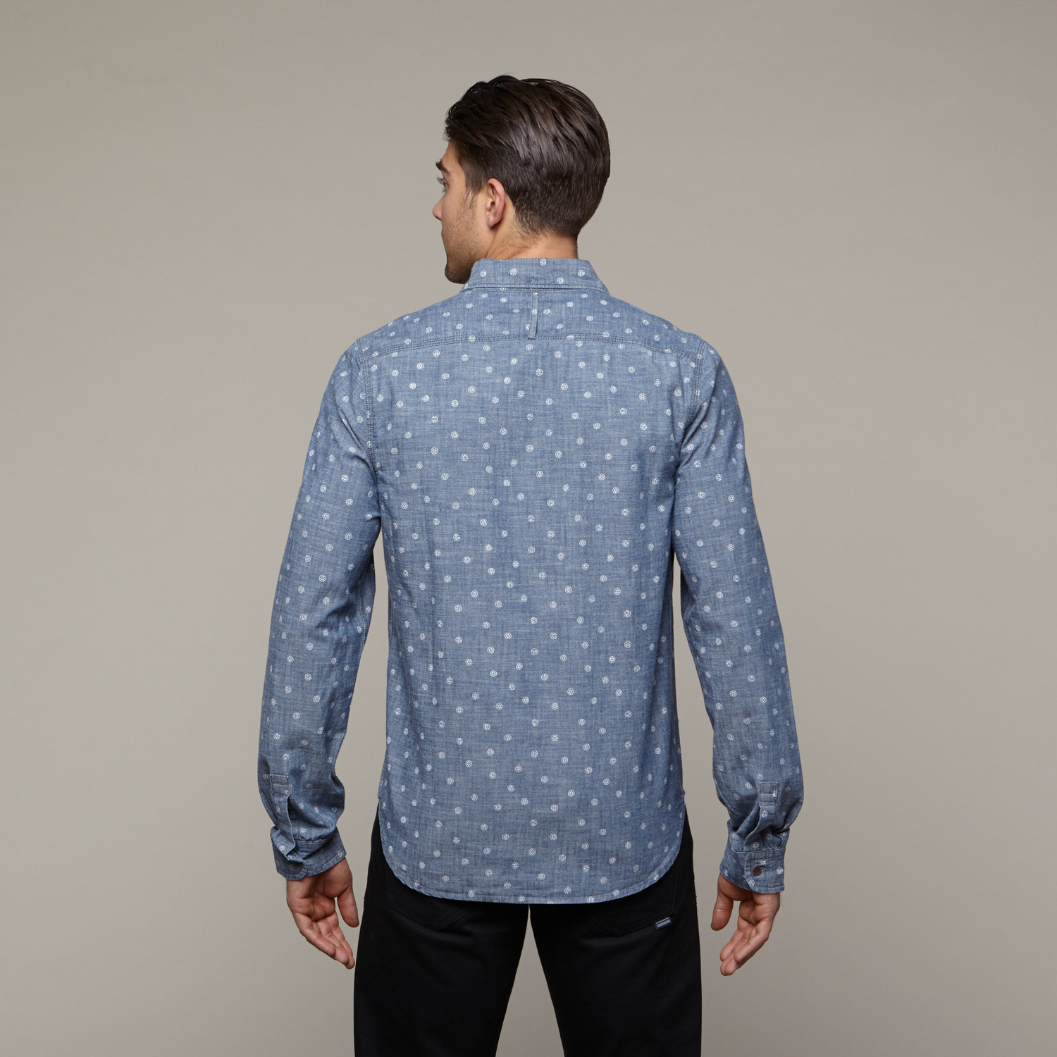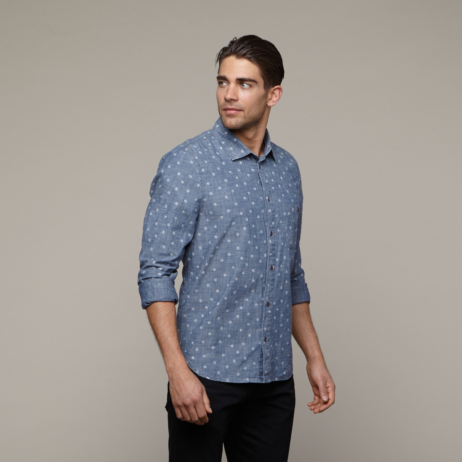 Part of Alternative Apparel's Tokyo-inspired collection, the Printed Ken Chambray Shirt features a rich Indigo wash and is tailored in a classic long-sleeve, button-up shirt style.
