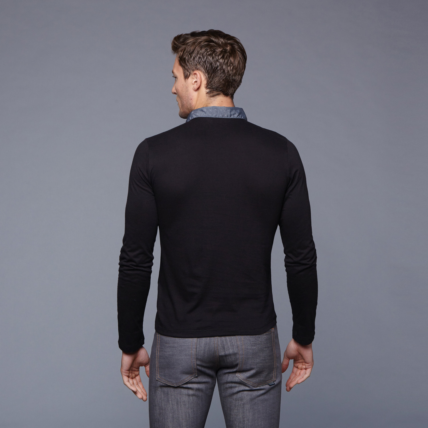 Sporty and preppy, the Long Sleeve Polo takes athletic-wear and adds special detailing that you'll want to show off every day. A contrast, chambray and stripe polo neck conveys your devotion to sports while remaining refined and out of the fray.