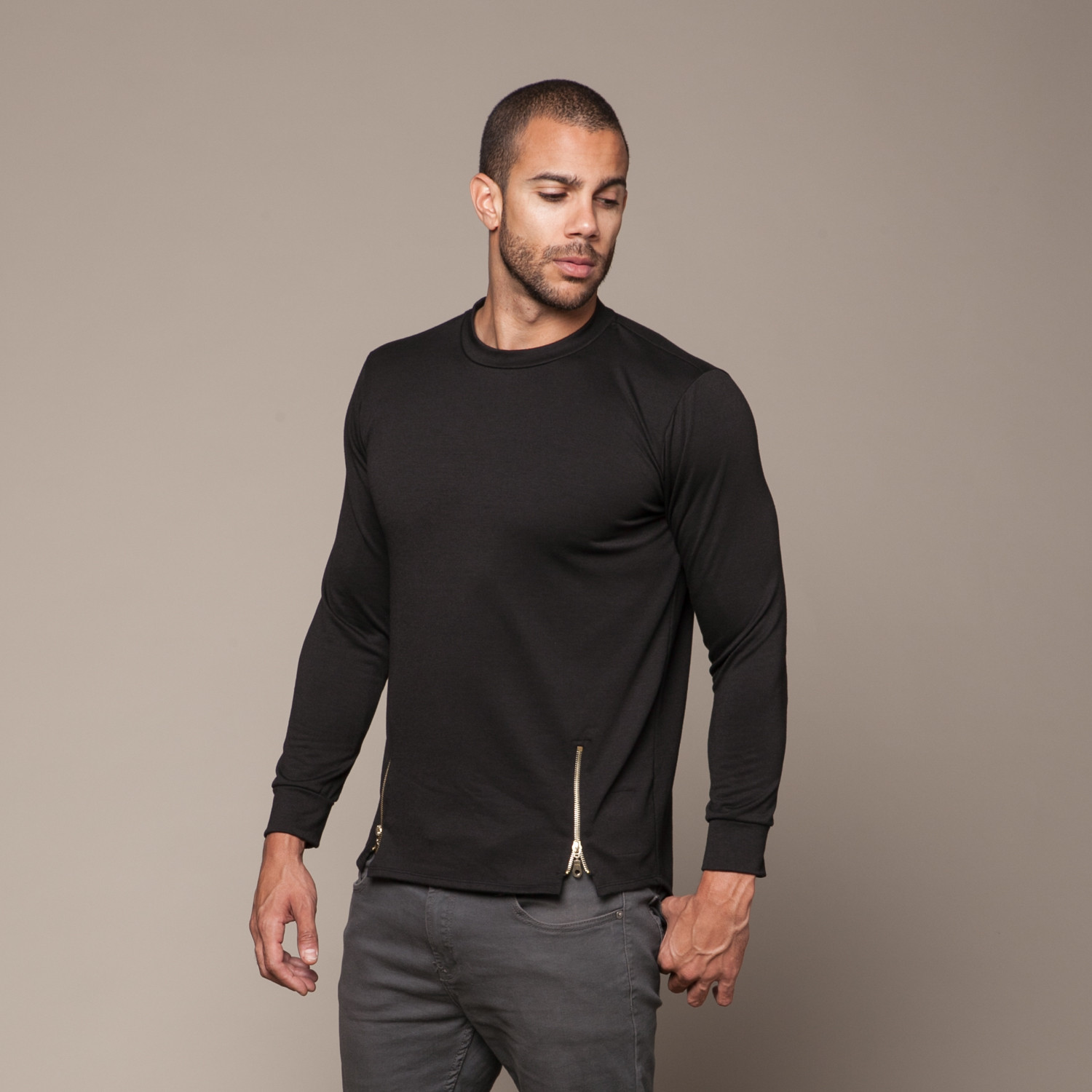 Upgrade your essentials with this Long Sleeve Sweater. Streetstyle-ready with double gold zipper detailing at the front and a dramatic curved back hem, you'll love wearing it around town with your favorite kicks.