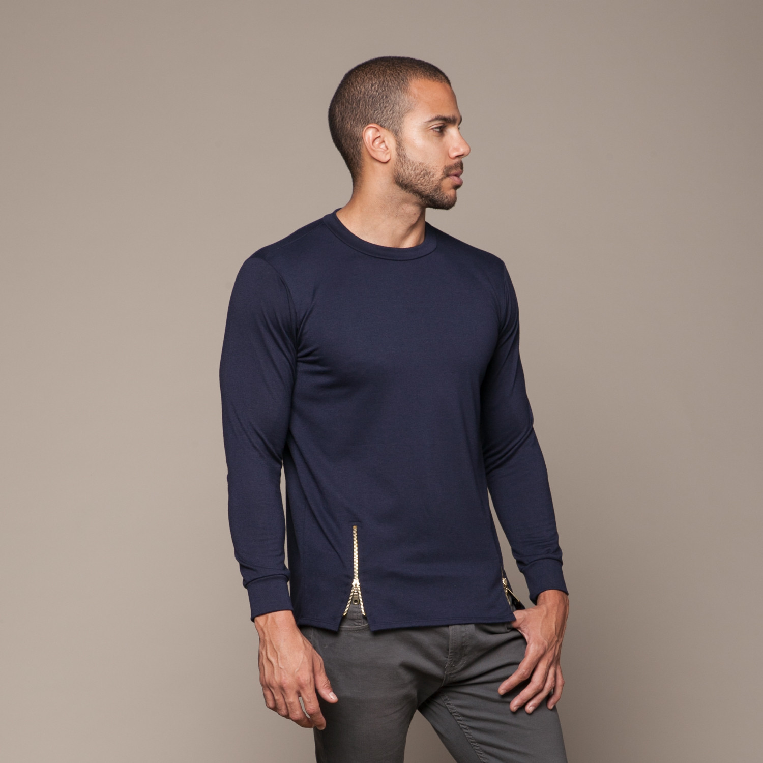 Upgrade your essentials with this Long Sleeve Sweater. Streetstyle-ready with double gold zipper detailing at the front and a dramatic curved back hem, you'll love wearing it around town with your favorite kicks.