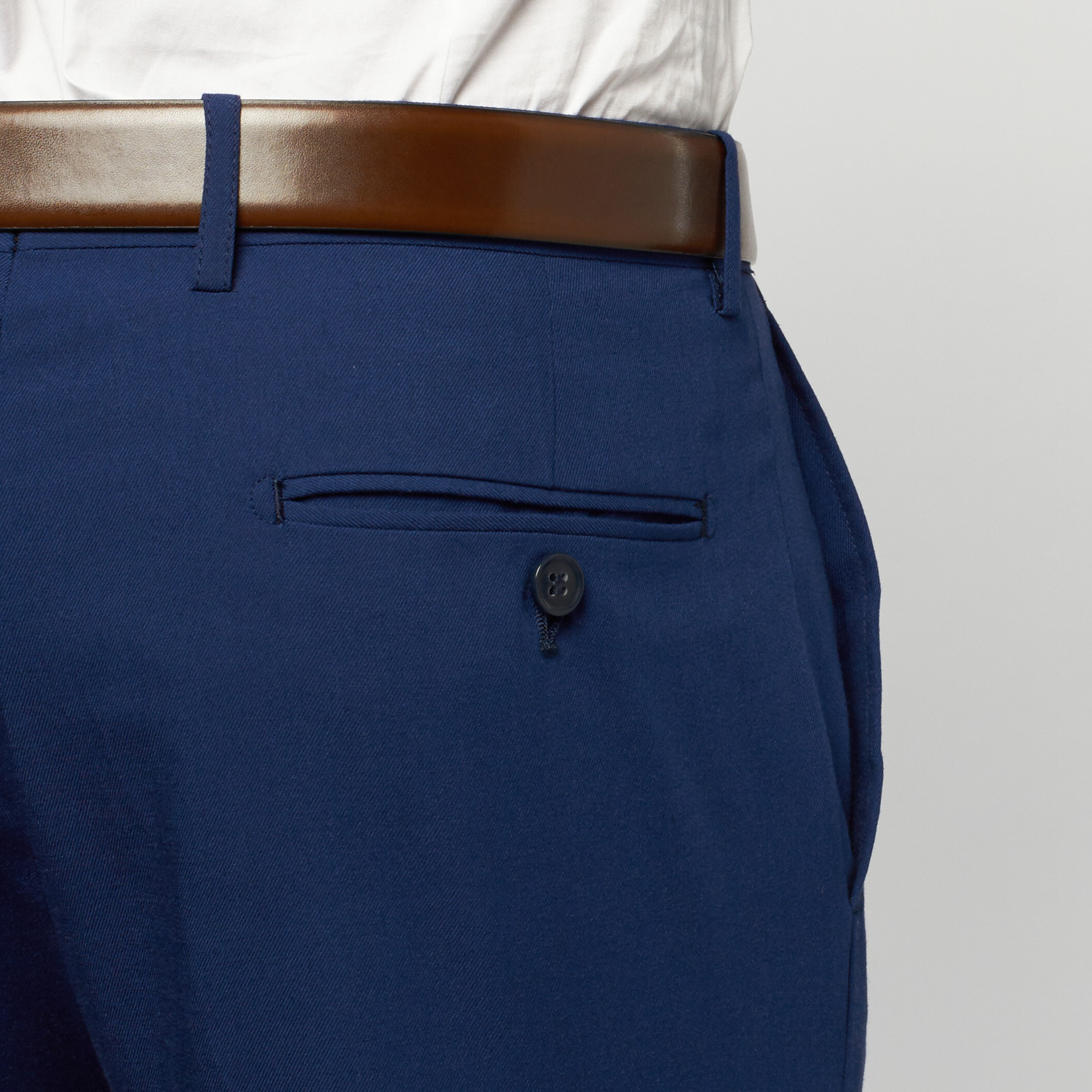 In order to calculate the waist size of the pant, subtract six from the size of the suit. For example, a size 40 suit will have a 34" pant.