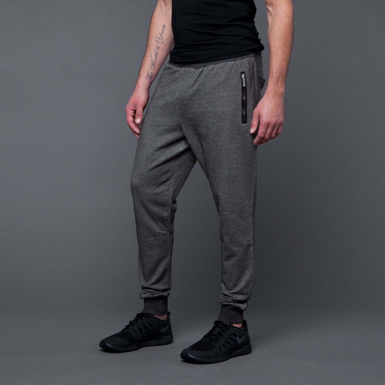 With a drawstring waist and a faux leather trim zipper pocket, the Grey Marled French Terry Jogger is a pant with a modern and relaxed fit. Perfect for lounging, working out, or running errands in absolute comfort, it pairs perfectly with a Members Only tee.