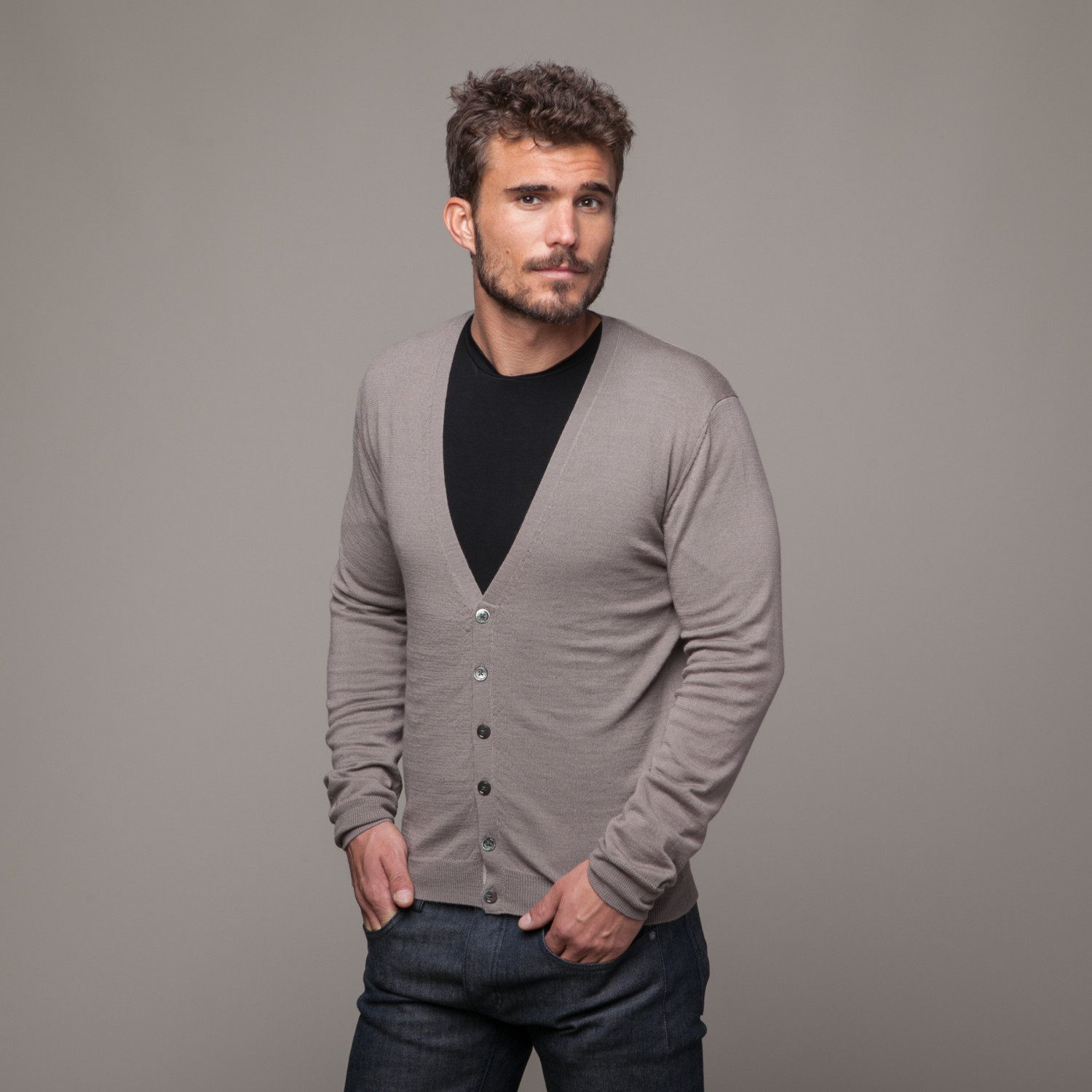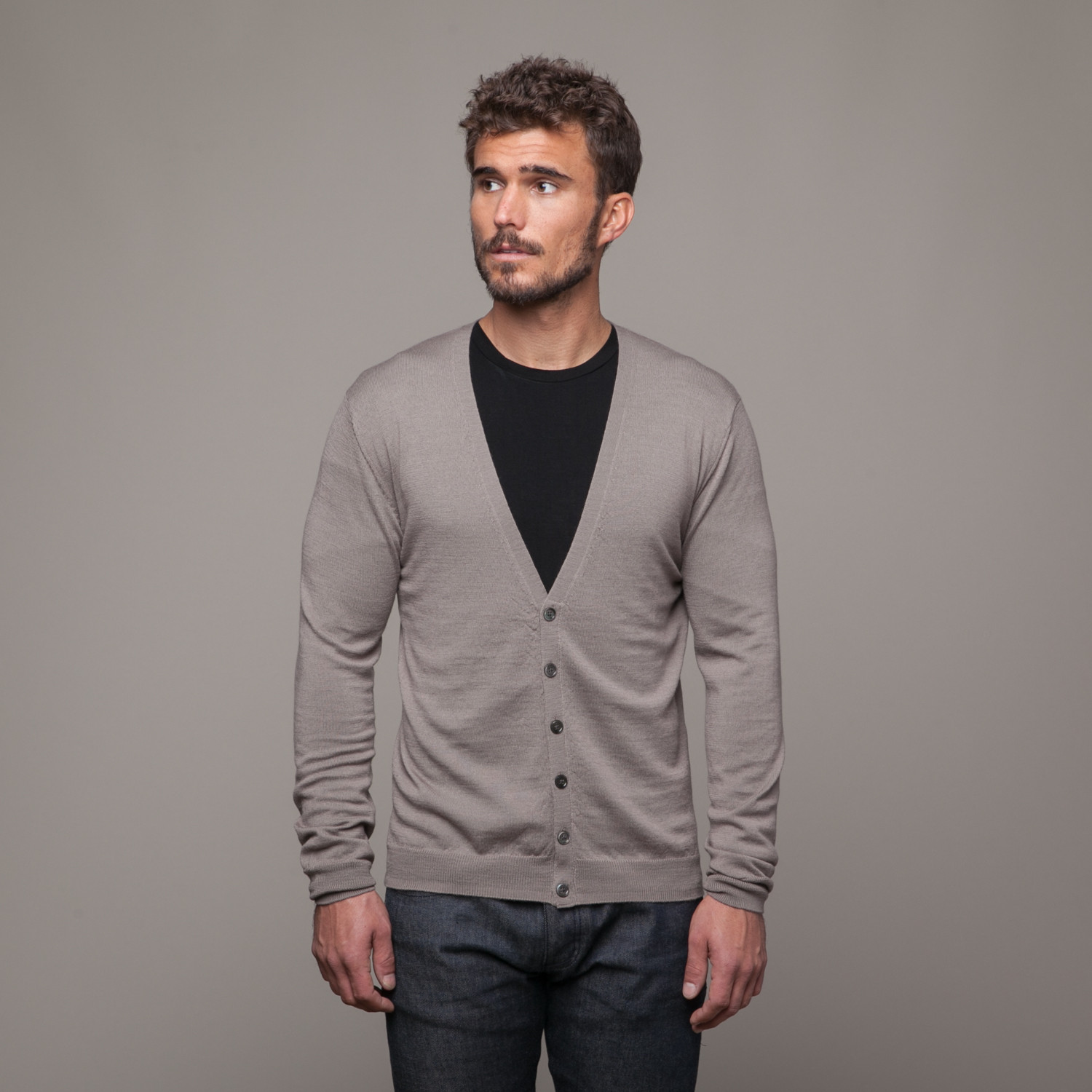 The ideal sumptuous basic, this Merino and Cashmere Cardigan is perfect for layering over shirts and under sportcoats. Made with the finest yarn in a merino-cashmere blend, it's an essential addition to a winter wardrobe.