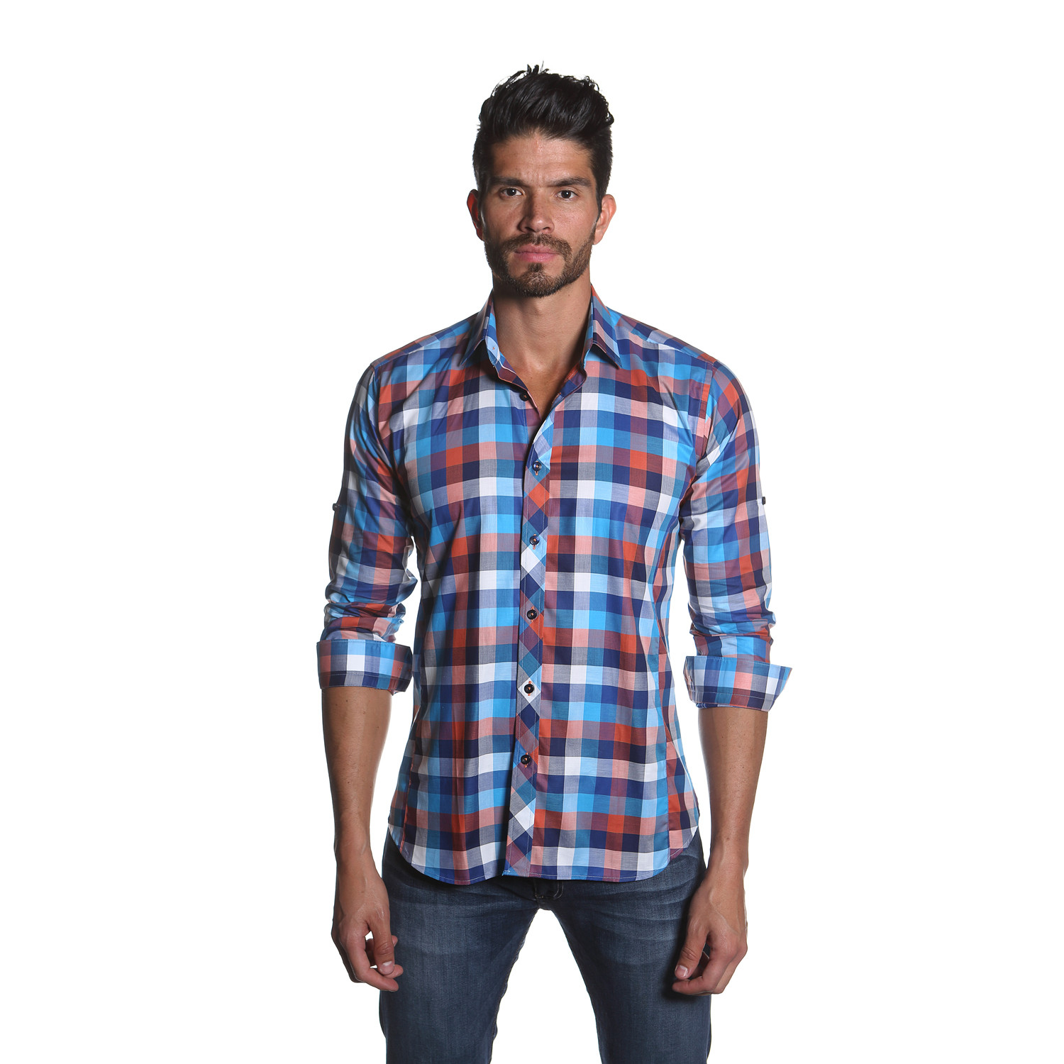 Semi fitted but wholly sexy, this Jared Lang original Button-Up features the contrast stitching and trimmed collar that sets the brand apart. Crafted in a super-breathable yet semi-formal style, it's ideal for any dapper man.