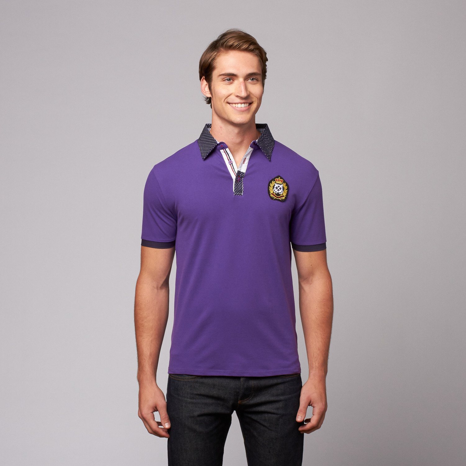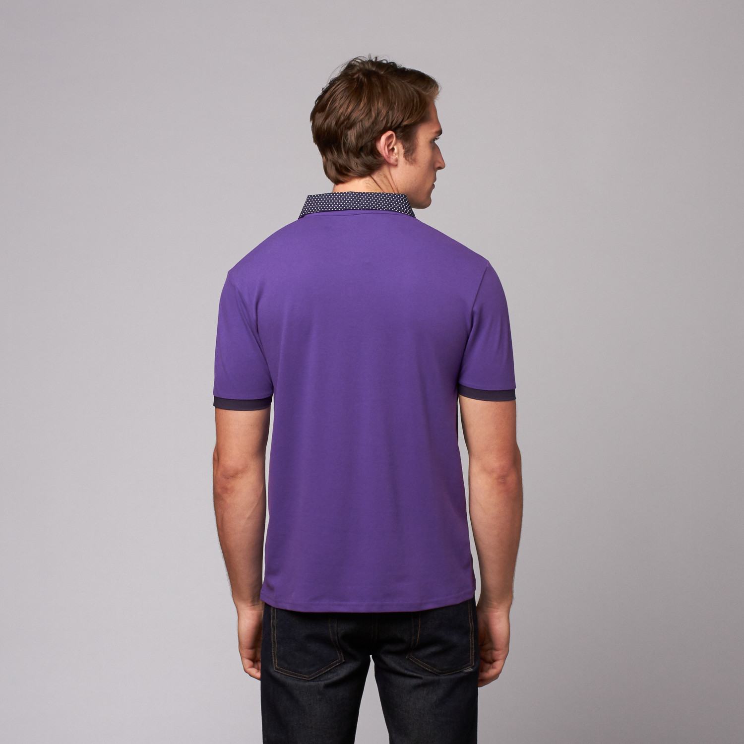 Patterned Collar Pique Polo // Purple + Navy Dot (XL)