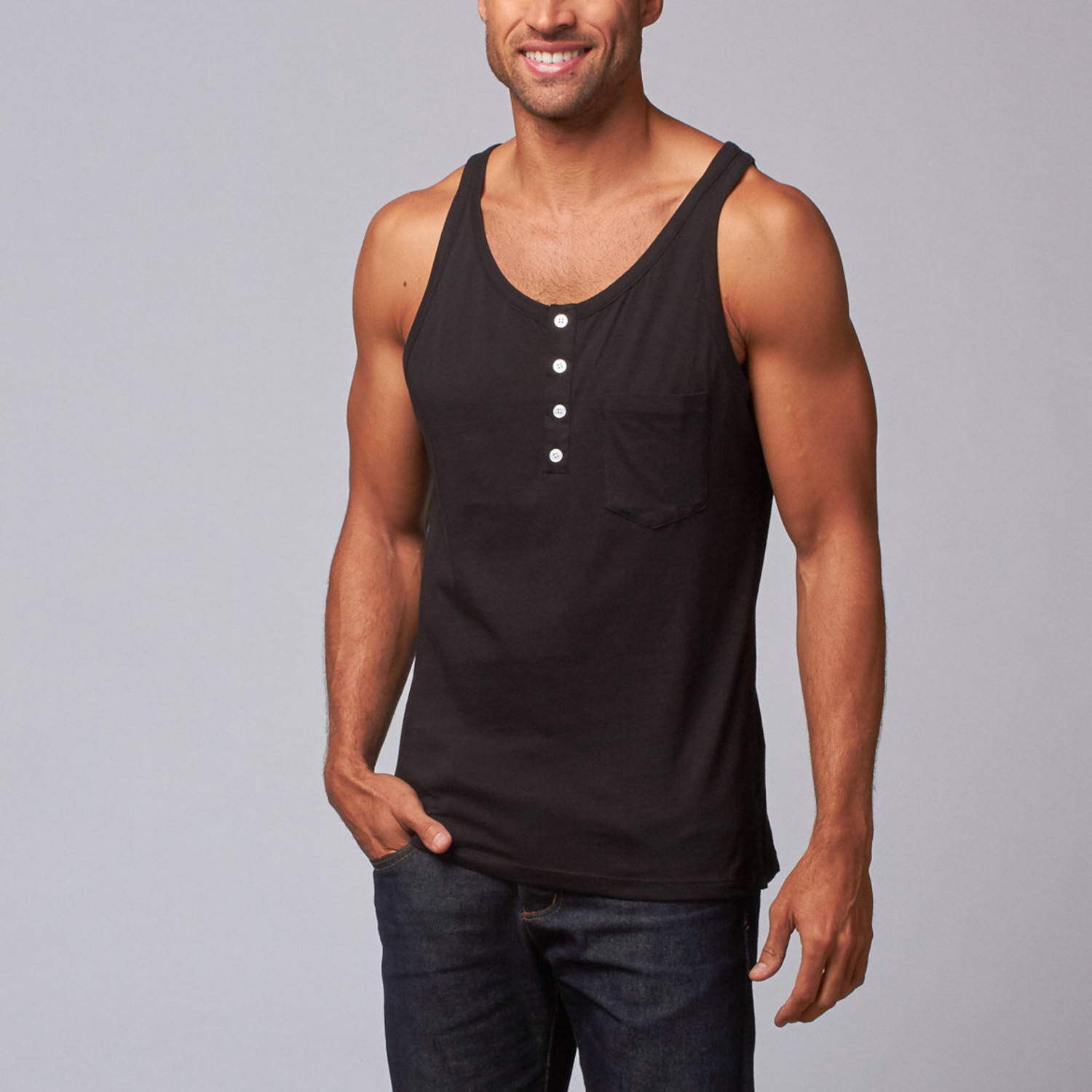 The Pima Tank is a lightweight basic done in a specially washed, long-thread cotton for added softness. A henley placket and a patch pocket at the chest make it an easy warm weather layering piece with an extra dose of style.