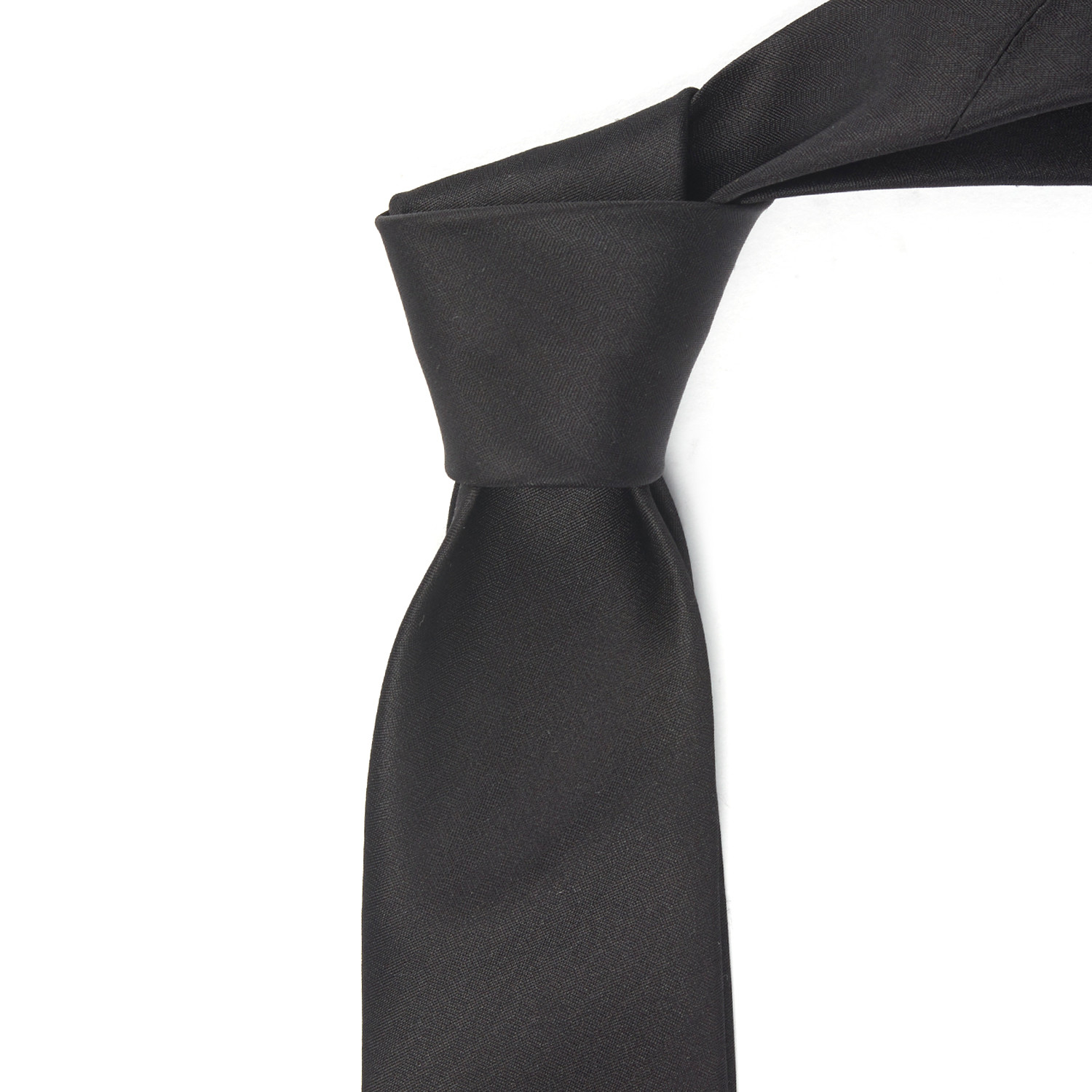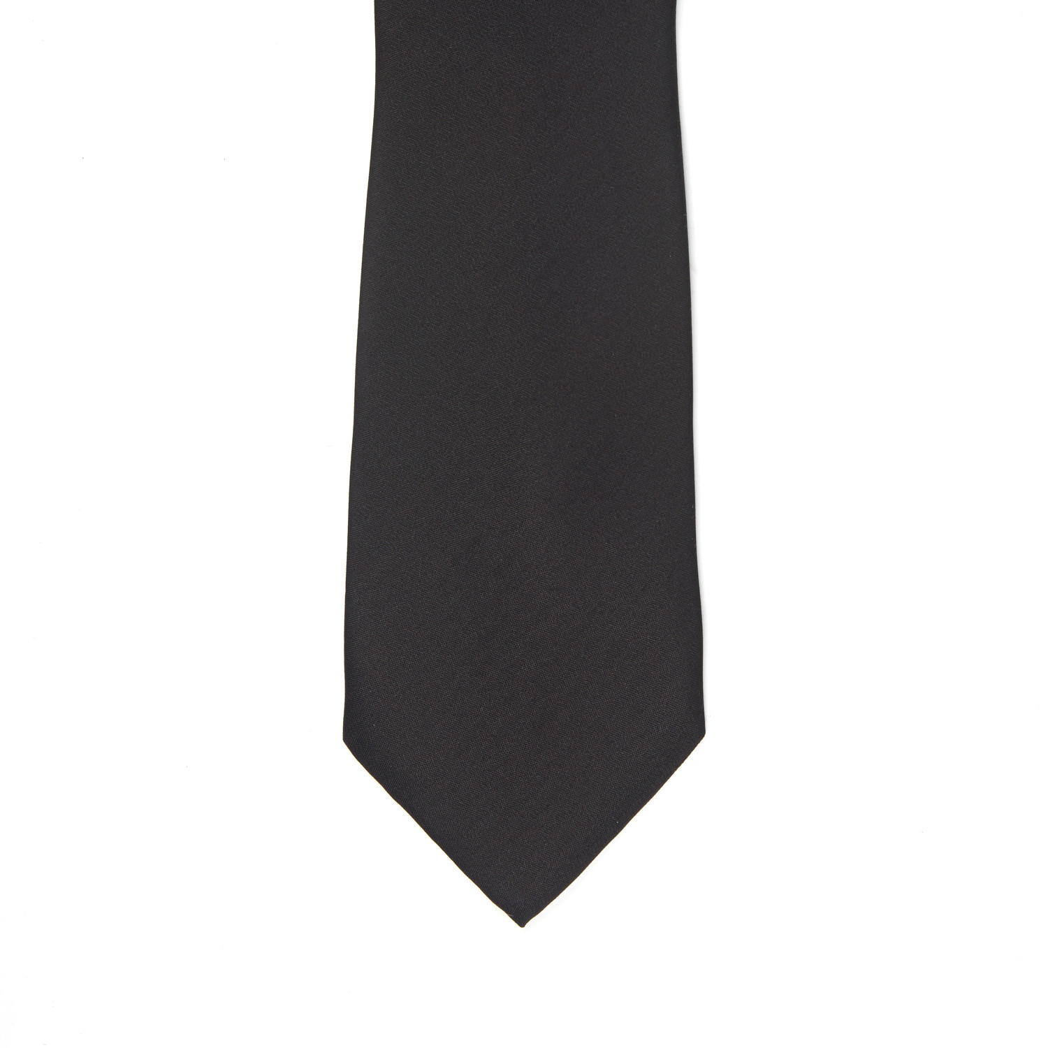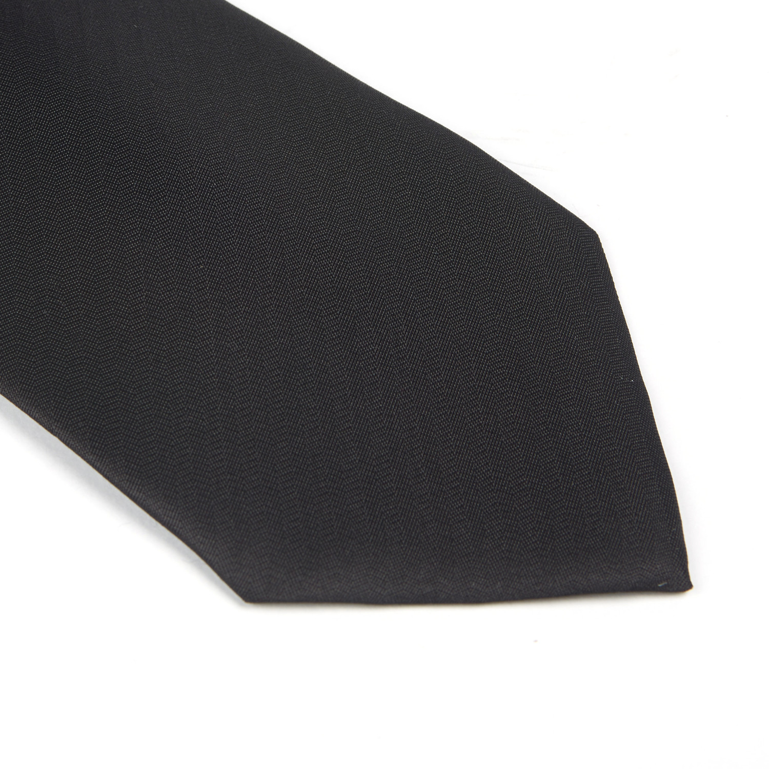The subtlest of flattened herringbone weaves gives this black tie its striped texture. Done in an Italian silk by some of Italy's finest artisans, it's the perfect finishing touch for smart, expensive suiting.