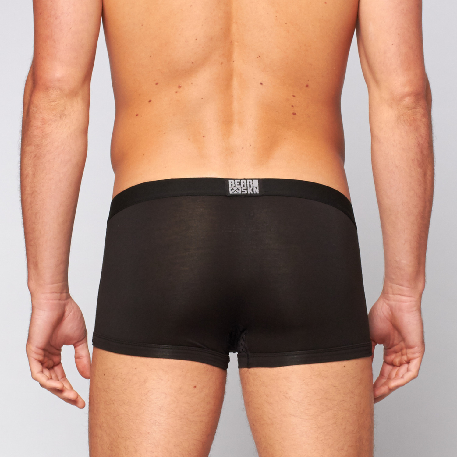 Like all Bear Skn underwear the Standard Issue Trunk was made to fit the needs of every guy, both big and small. Perfect for active guys, its four-way stretch cotton and elastane blended fabric eliminates sagging and stretching, while a comfortable pouch gently holds your most delicate parts in place without unnecessary constriction; meanwhile, a double layer of mesh between the legs increases airflow while seamed stitches on the waistband reduces unwanted rollover. Simply put: Bear Skn has thought of everything.