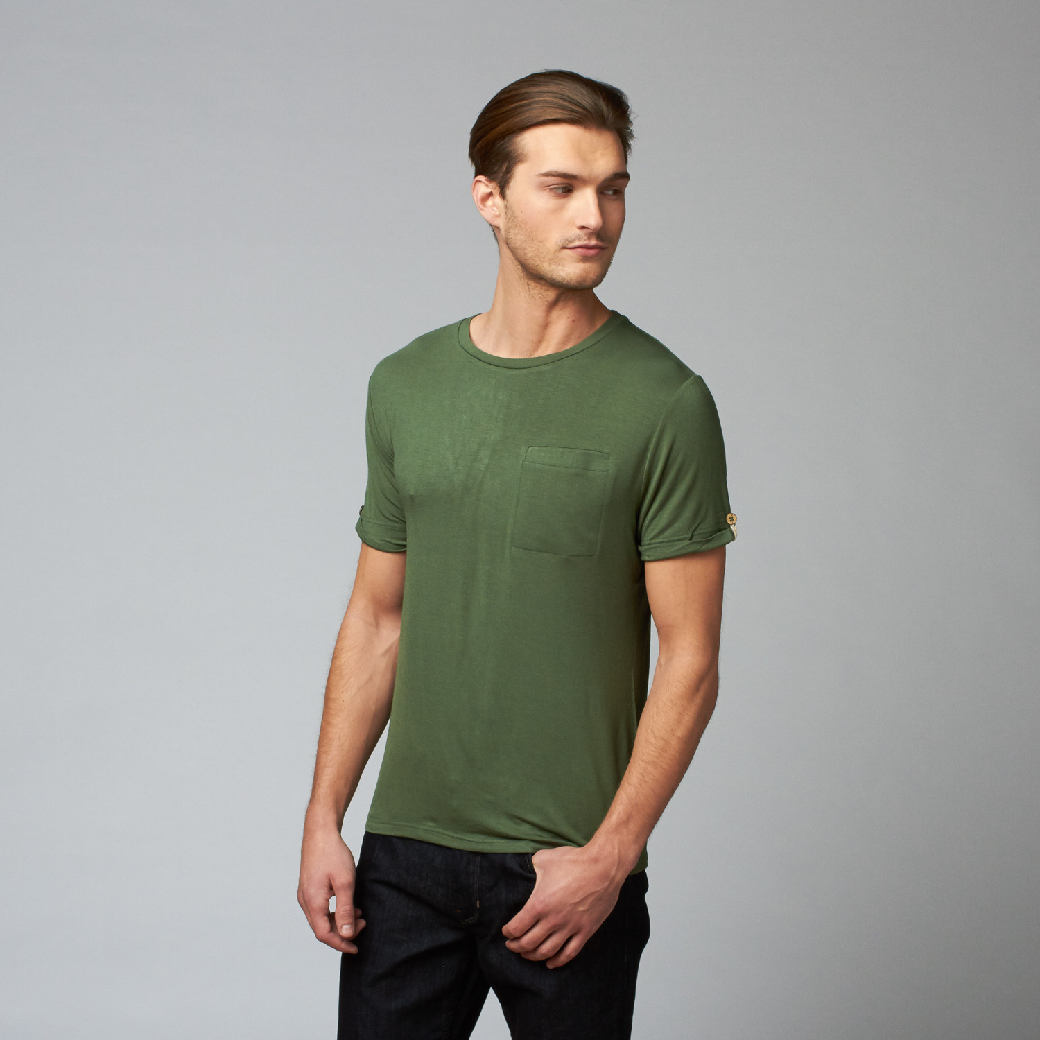 Timo Button-Cuffed Crew T-Shirt // Green (L)