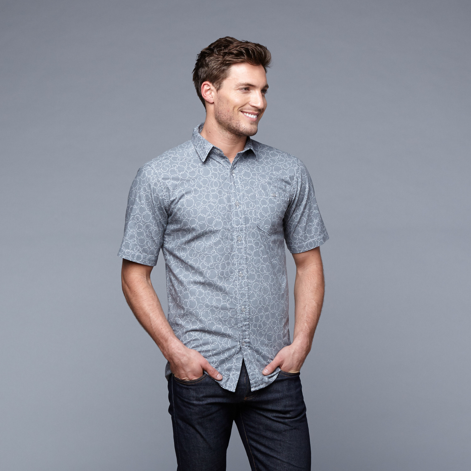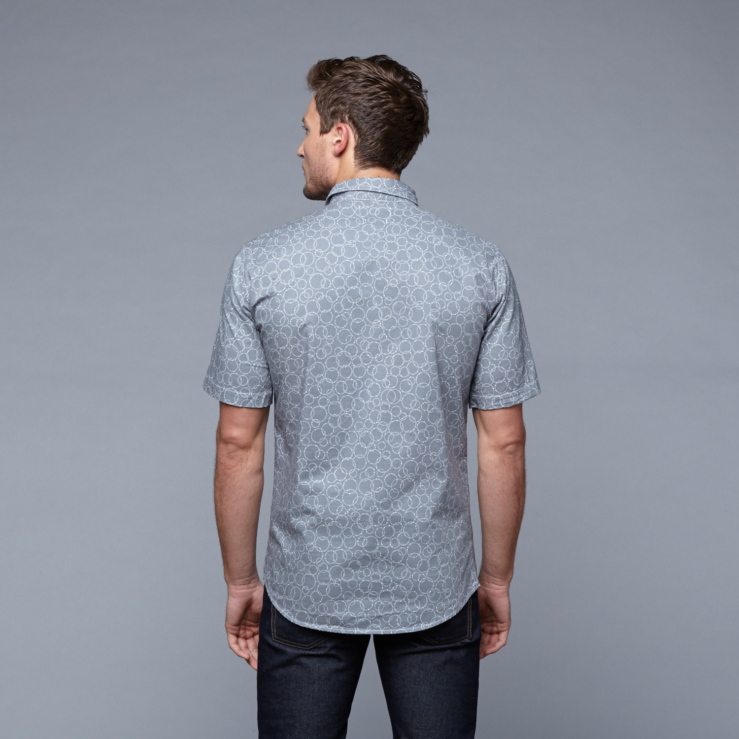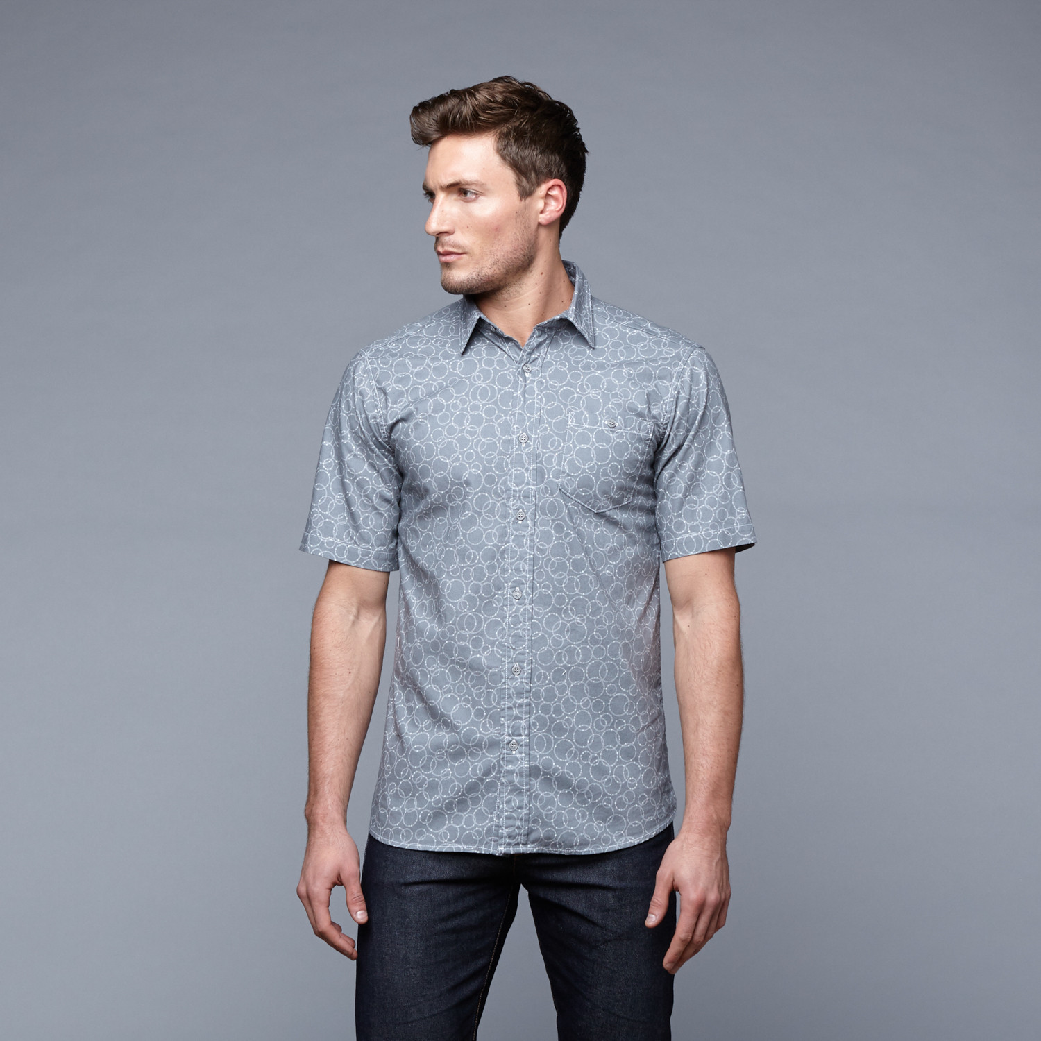 The Voyager Shirt is a laid-back statement maker. Its intersecting ring print pairs well with fitted khakis and skinny, dark jeans.