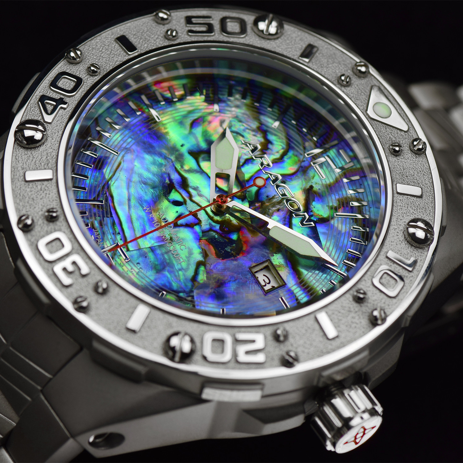 When you hold and wear an Aragon watch, it's easy to tell that it was made with a passion for horology and style. Robust features, like a stainless steel case and a K1 mineral crystal, make it a durable piece you can wear everyday.