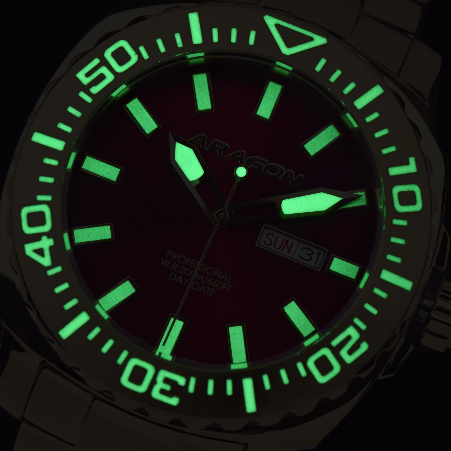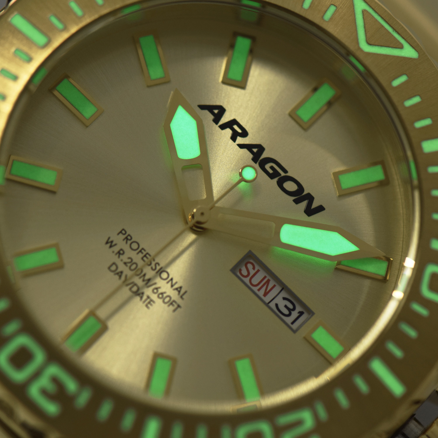 When you hold and wear an Aragon watch, it's easy to tell that it was made with a passion for horology and style. Robust features, like a stainless steel case and a K1 mineral crystal, make it a durable piece you can wear everyday.