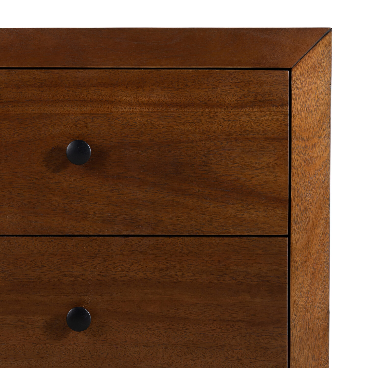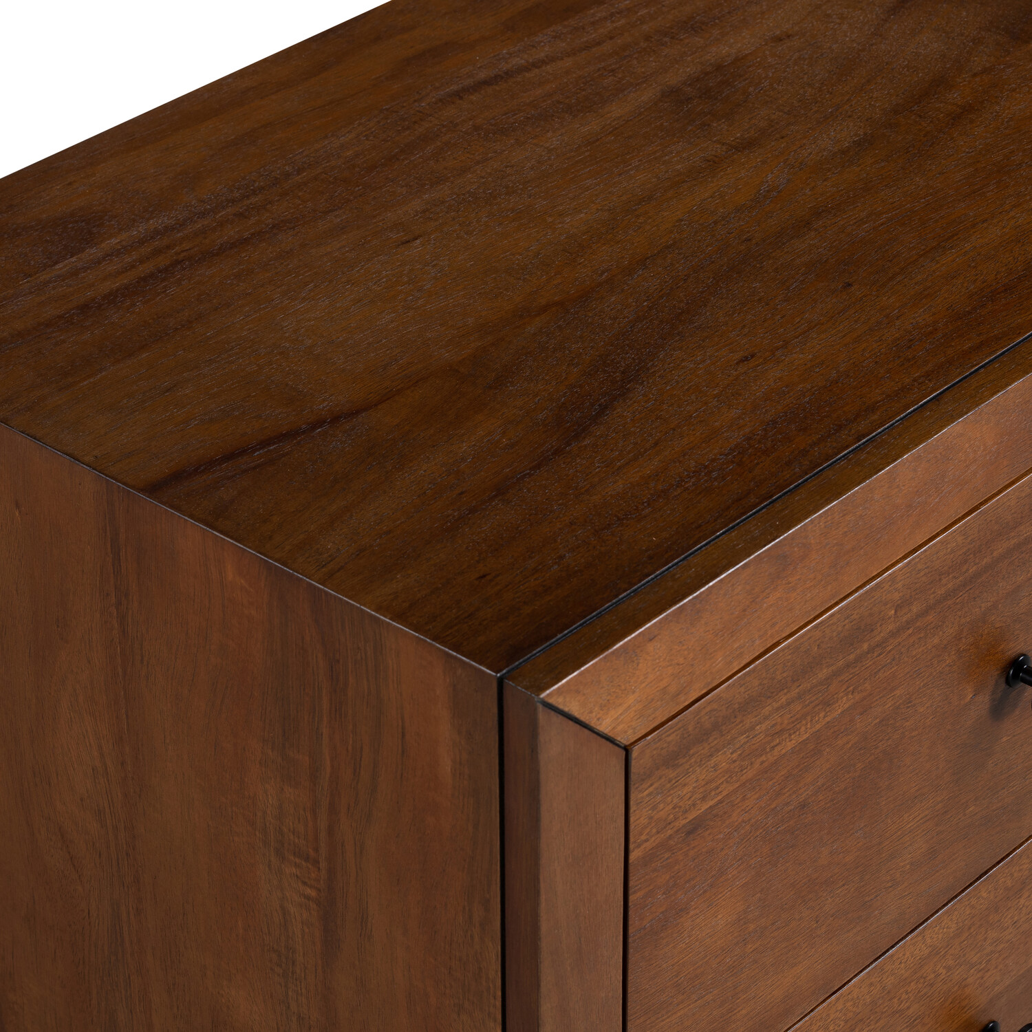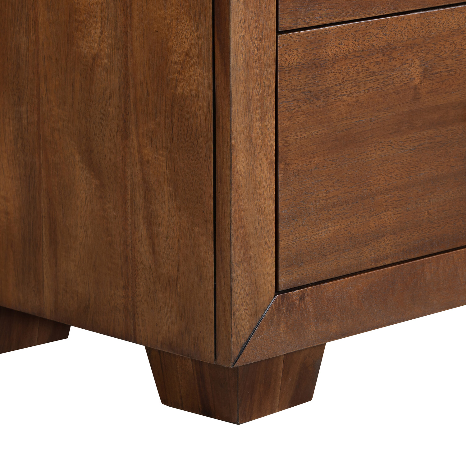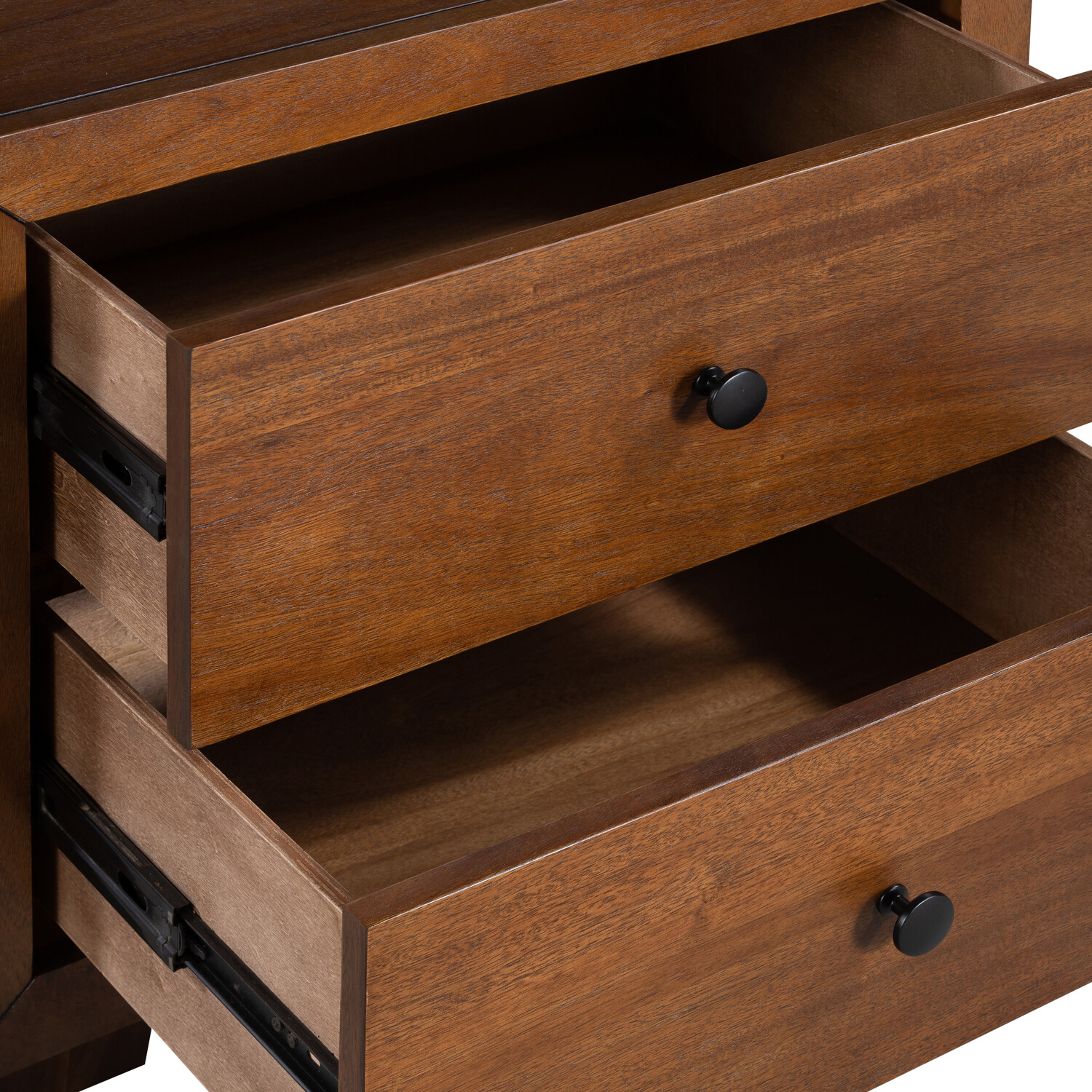 The pinnacle of rustic grandeur, this classic farmhouse design's handcrafted, heirloom-quality appeal offers a simple appearance that reflects modern living. Its construction combines solid acacia wood with veneers that have been given a beautiful soft shine to last many years. The mid-scale designs fit comfortably in all American home sizes and are perfect for urban decor styles. Solid wood framed boxes, strong square tapered bun feet, and supple circular bronzed metal fasteners are all included in this cozy and relaxed urban nightstand design.