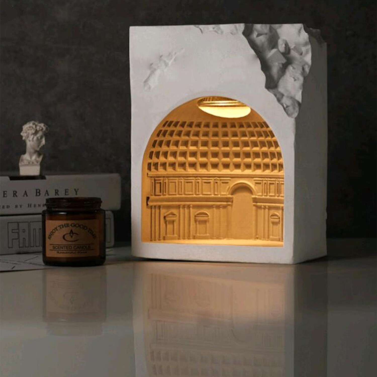 Add a tasteful, artistic touch to any space with this LED-illuminated accent lamp from Dress The Home. Handcrafted in their studio, these ambient lights are opulent recreations of both classic and modern architectural styles. Each one is made of real cement that is hand polished to perfection to serve as an exquisite display piece for a corner table or coffee nook.