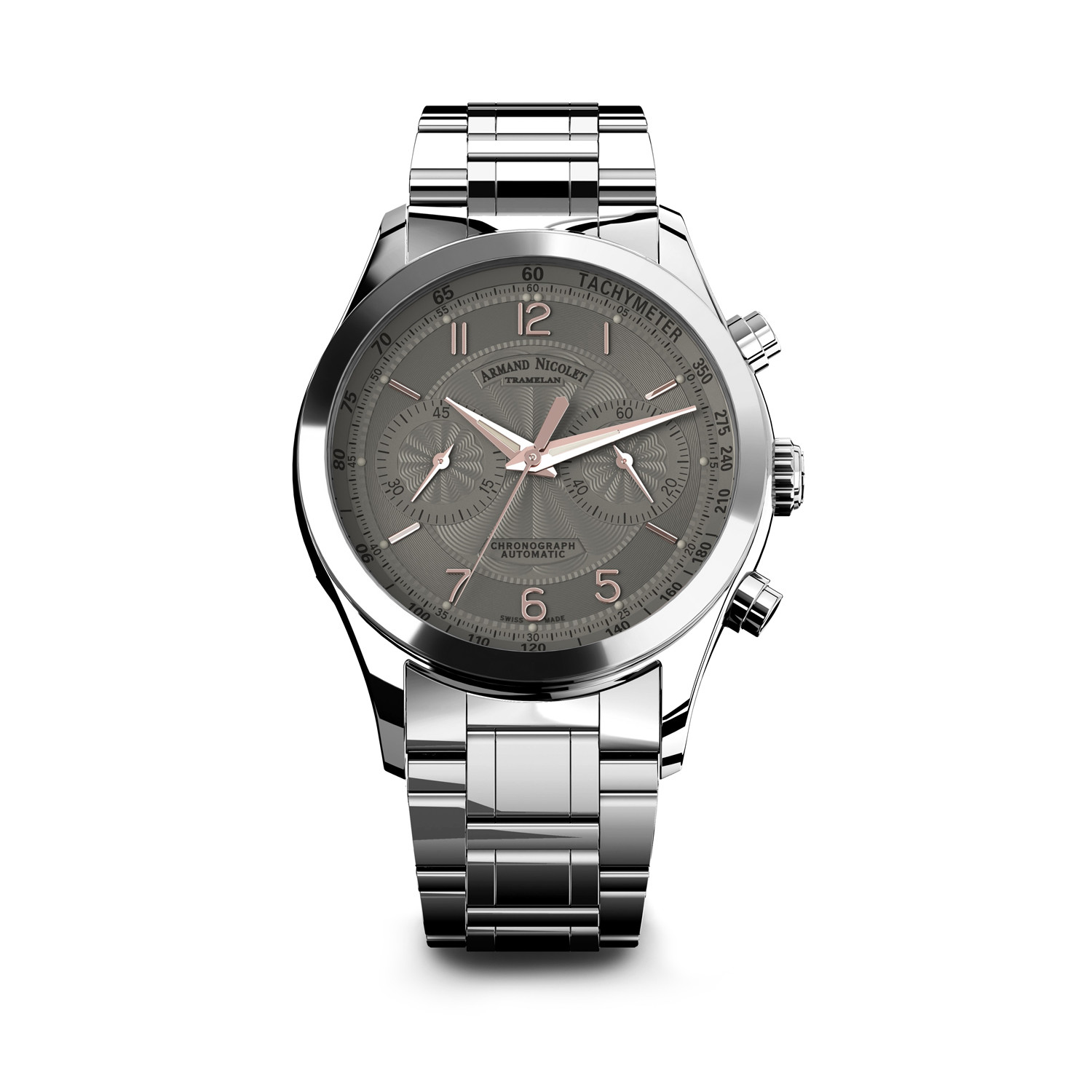 The Armand Nicolet M02 Automatic is the star of a sophisticated and timeless line. The goal was to create a collection that wows the public with a look that integrates the present day trends of the market for a bigger face. It's a beautiful classic that features increased readability thanks to the bigger outlook. The original concept that a few years ago inspired the first version of this family hasn't changed, but the Maison this time has focused particularly on comfort. In order to make the watch as comfortable as possible on a man's wrist the weight has been reduced and also time-telling is now easier, thanks to a revisited dial where Arabic numbers are displayed alternatively to indexes. The crown is decorated with Armand Nicolet's logo.