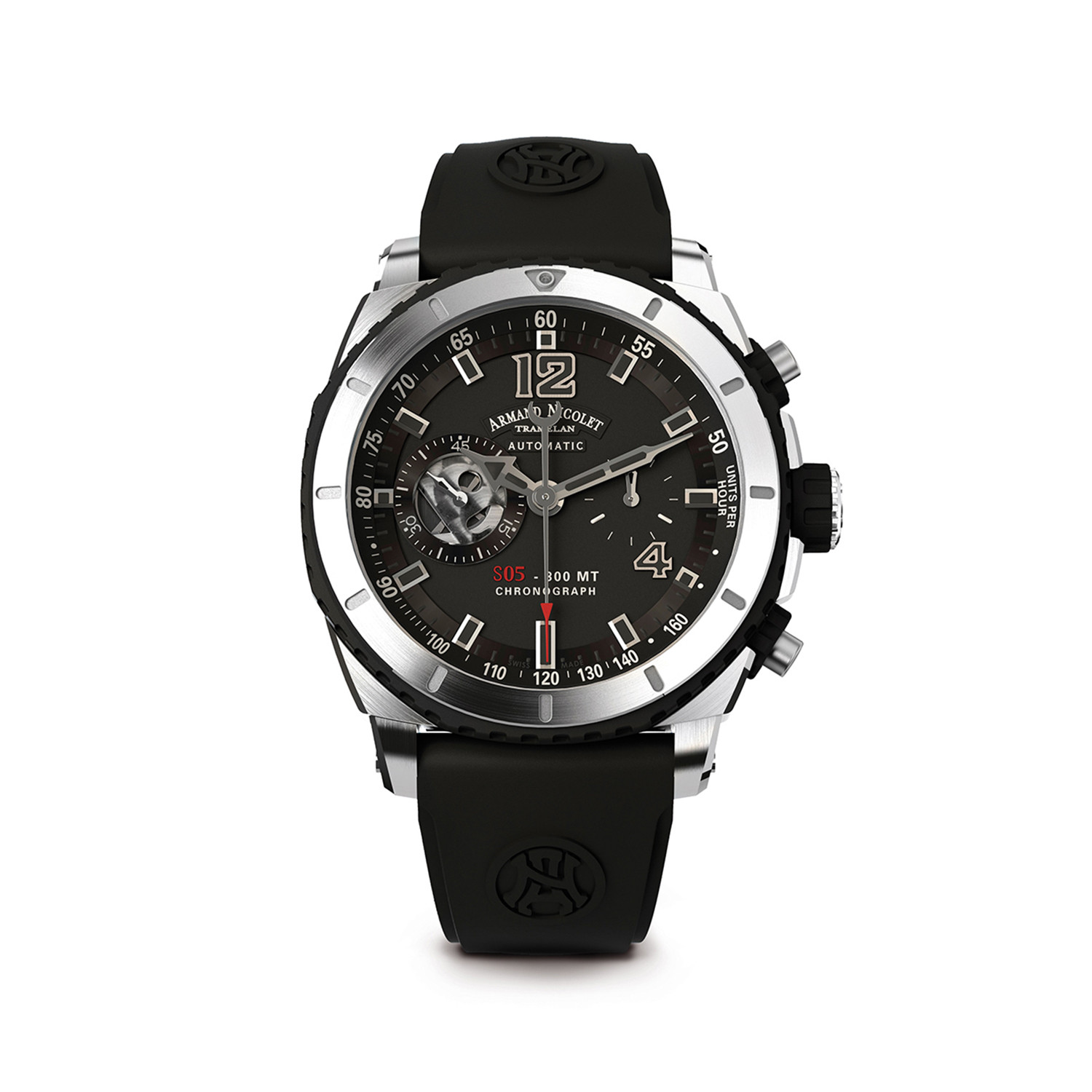 What makes a watch tick? In the case of the interesting and elusive S05 sport watch collection, it's an aggressively supersized appearance, topped off by its screwed back with a raised pattern, and a dial with applied luminous indexes and hands. Its unique appearance is perfectly tailored to the fastidious timekeeper.