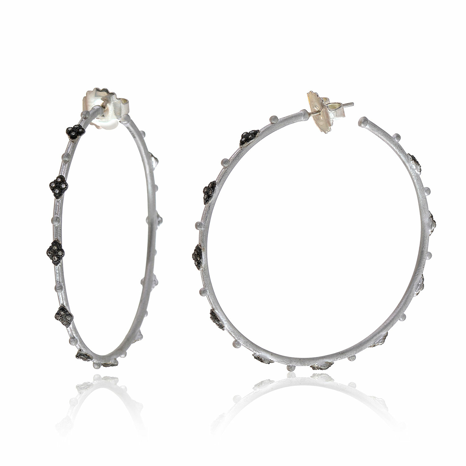 New World Sterling Silver Diamond Hoop Earrings // Store Display