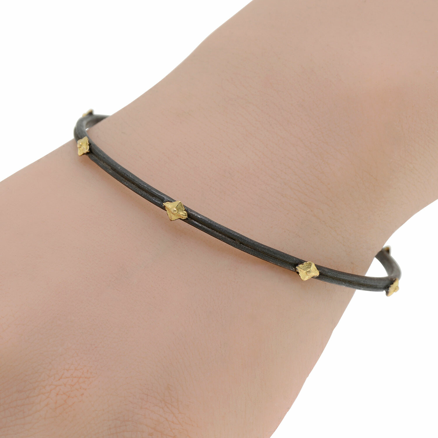 Old World 18K Yellow Gold + Sterling Silver Bangle Bracelet // 8" // Store Display