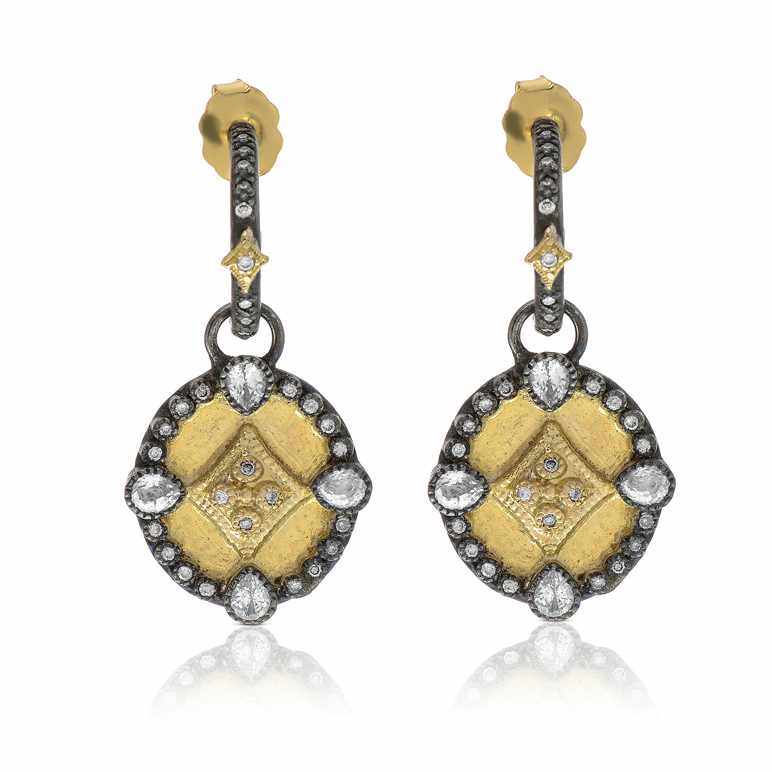 Old World 18K Yellow Gold + Sterling Silver Diamond Drop Earrings // Store Display