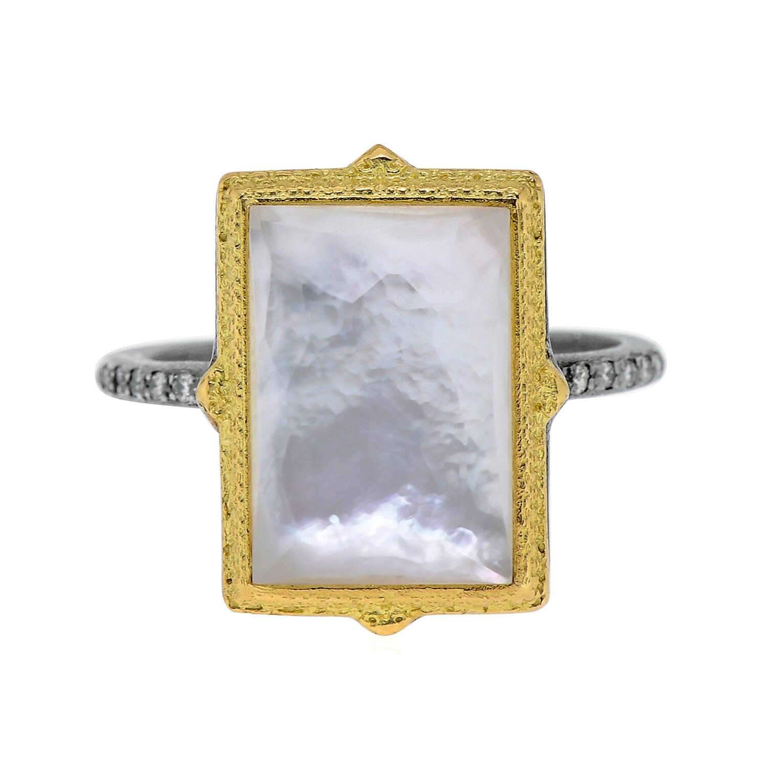 Old World 18K Yellow Gold + Sterling Silver Diamond + Mother of Pearl + Quartz Ring // Ring Size: 6.5 // Store Display