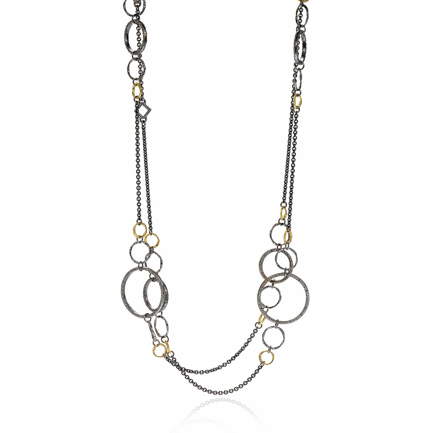 Old World 18K Yellow Gold + Sterling Silver Diamond Necklace // 34"-38" // Store Display
