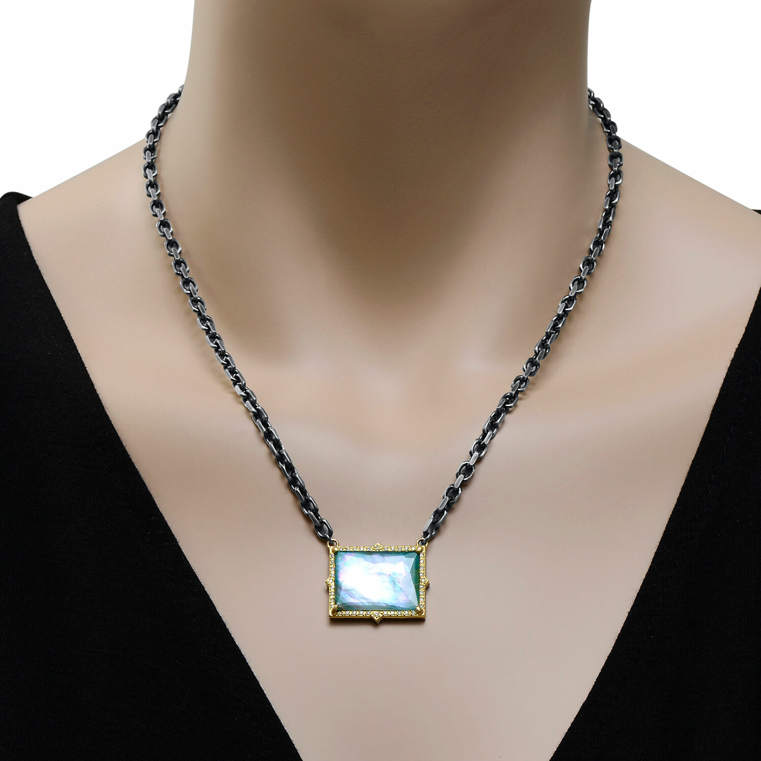 Old World 18K Yellow Gold + Sterling Silver Diamond + Peruvian Opal + Mother of Pearl + Quartz Necklace II // 16"-18" // Store Display