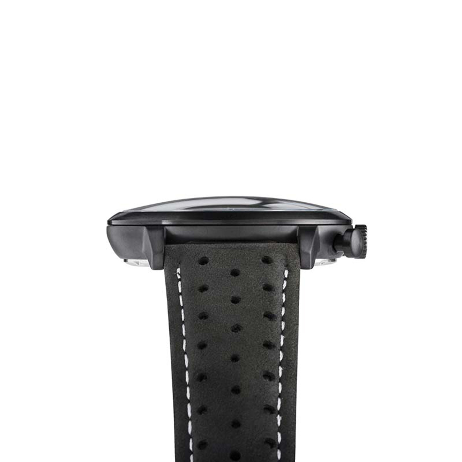 Eye-catching yet resilient, the Le Mans Collection pays homage to the height of auto racing in the mid 20th century. Courageous and dignified, this 2-dial chronograph features a domed mineral crystal, Miyota OS00 Chronograph movement, and a slim stainless steel case. The back of the case is etched with a vintage wheel rim and the contrast-stitched, perforated suede strap beautifully echoes the leather interiors of racing cars of the past.