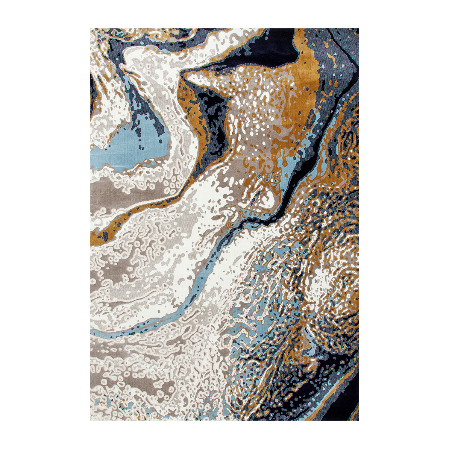 This collection of area rugs is patterned after the look of anodized metal. Featuring the cool colors and flowing textures of titanium that's been electrified, these large-format rugs were created with the latest weaving tech, for the richest possible colors and lines, amplifying your space to a whole new level.