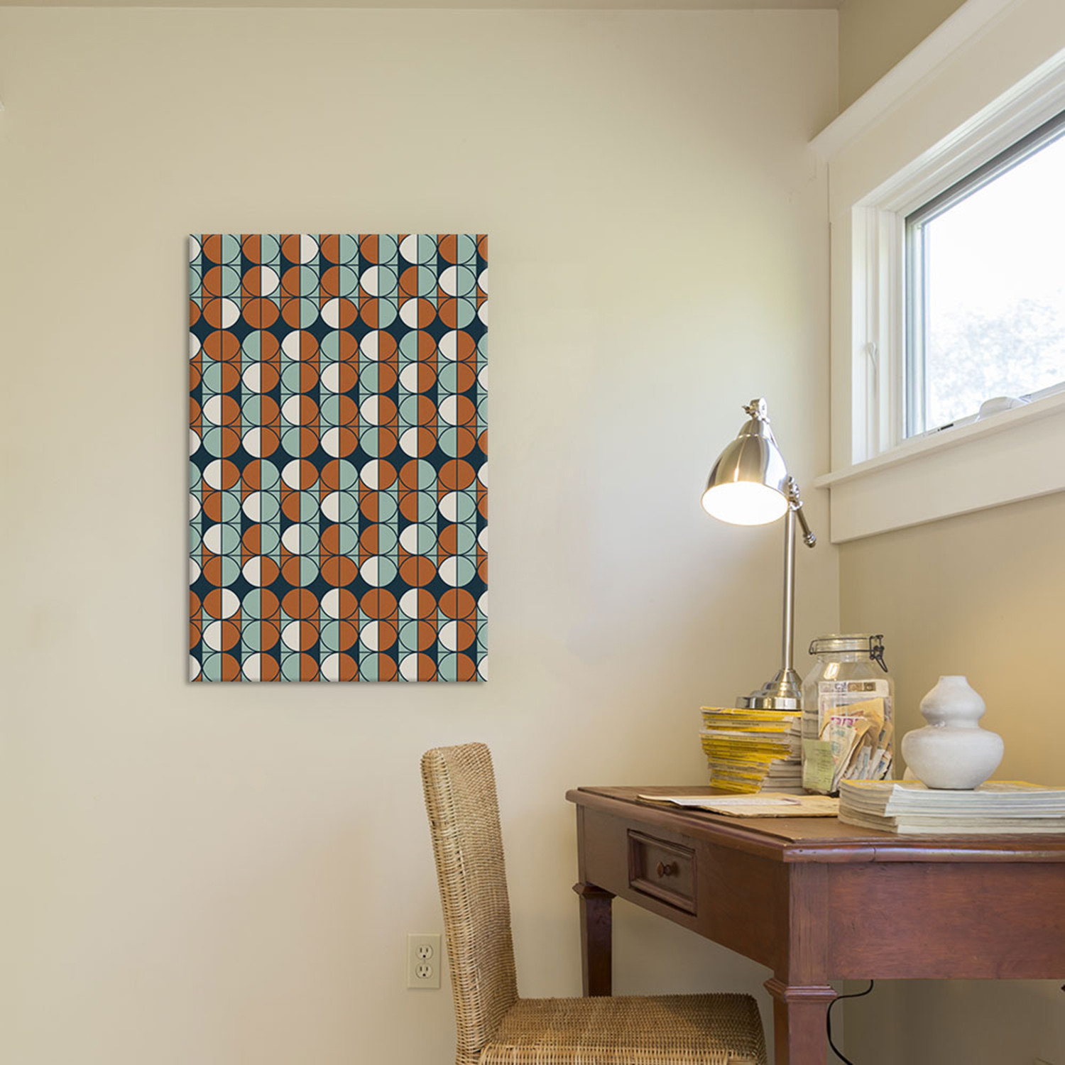 This collection of artwork features every style of art and comes from a wide array of artists from around the world, but it has something in common: Rust red and Navy blue. Two opposing colors that blend and repel each other in equal measure, to create a striking, eye-grabbing effects that are meant to tie a room together.