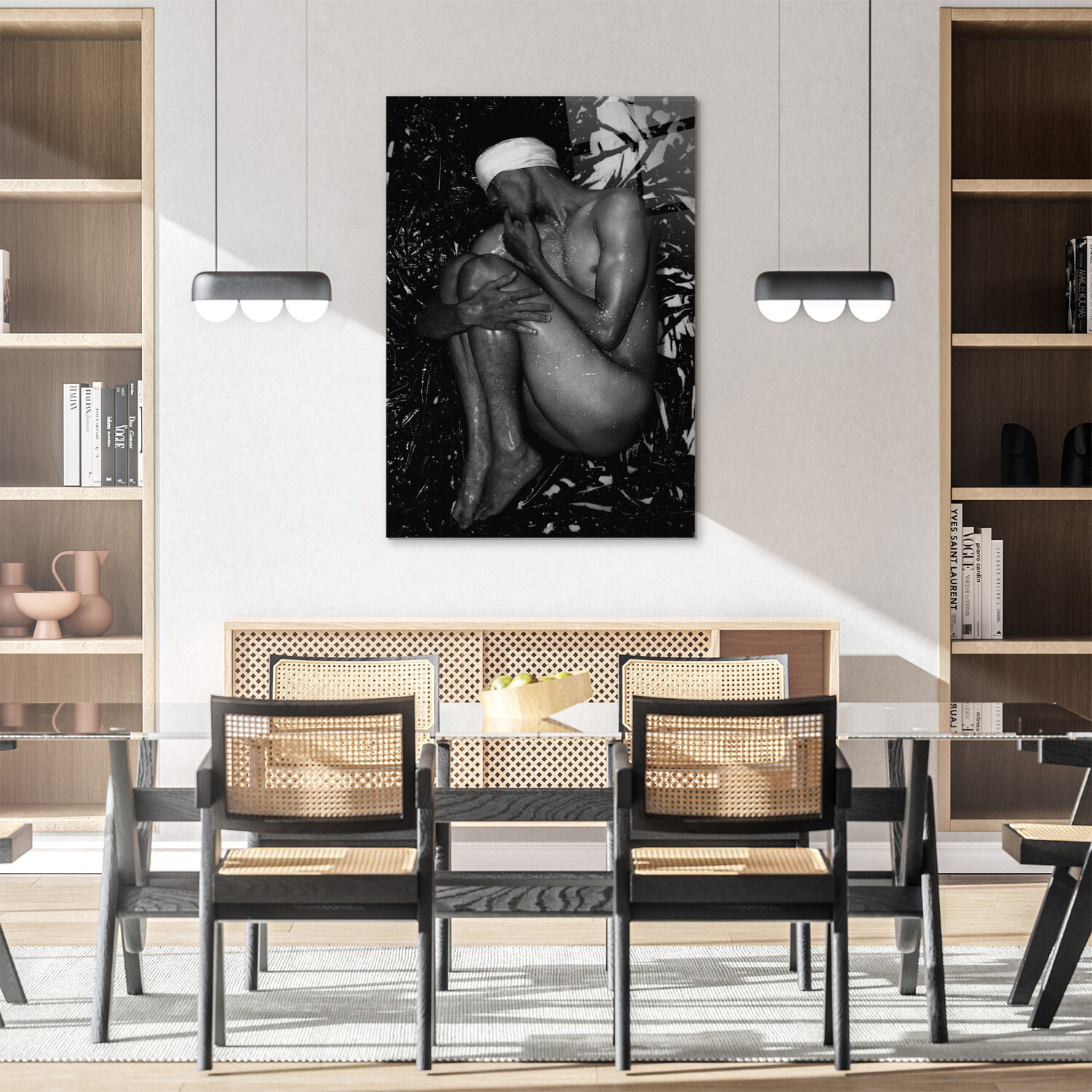 Provocative and seductive, this collection of erotic art on tempered glass is an expression of sensuality. Dramatic black and white prints use the contrast of light and shadow to evoke passion and desire.